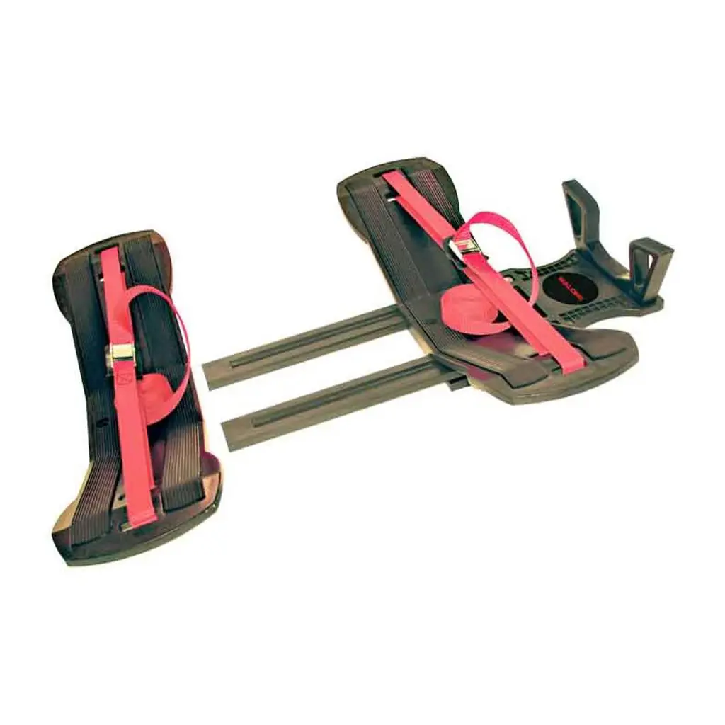 Keep your canoe, stand-up paddleboard, surfboard, or tandem kayak safe and secure off the dock ground or garage floor with this set of two Kayak Storage Racks by Leisure Sports. Made of durable powder-coated steel, these 17-inch-tall kayak stands come equipped with sturdy nylon straps and rubber bumpers to ensure your personal watercraft is protected from damage during storage. Each boat stand can hold up to 100lbs of combined weight and conveniently fold down to 6.25-inches-wide for compact storage or transport in the included mesh carrying bag.