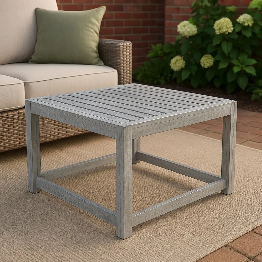 Leisuremod Patio Coffee Table With Black Aluminum Frame - Chelsea Collection, Weather-resistant Design, Perfect For Outdoor Spaces, Grey