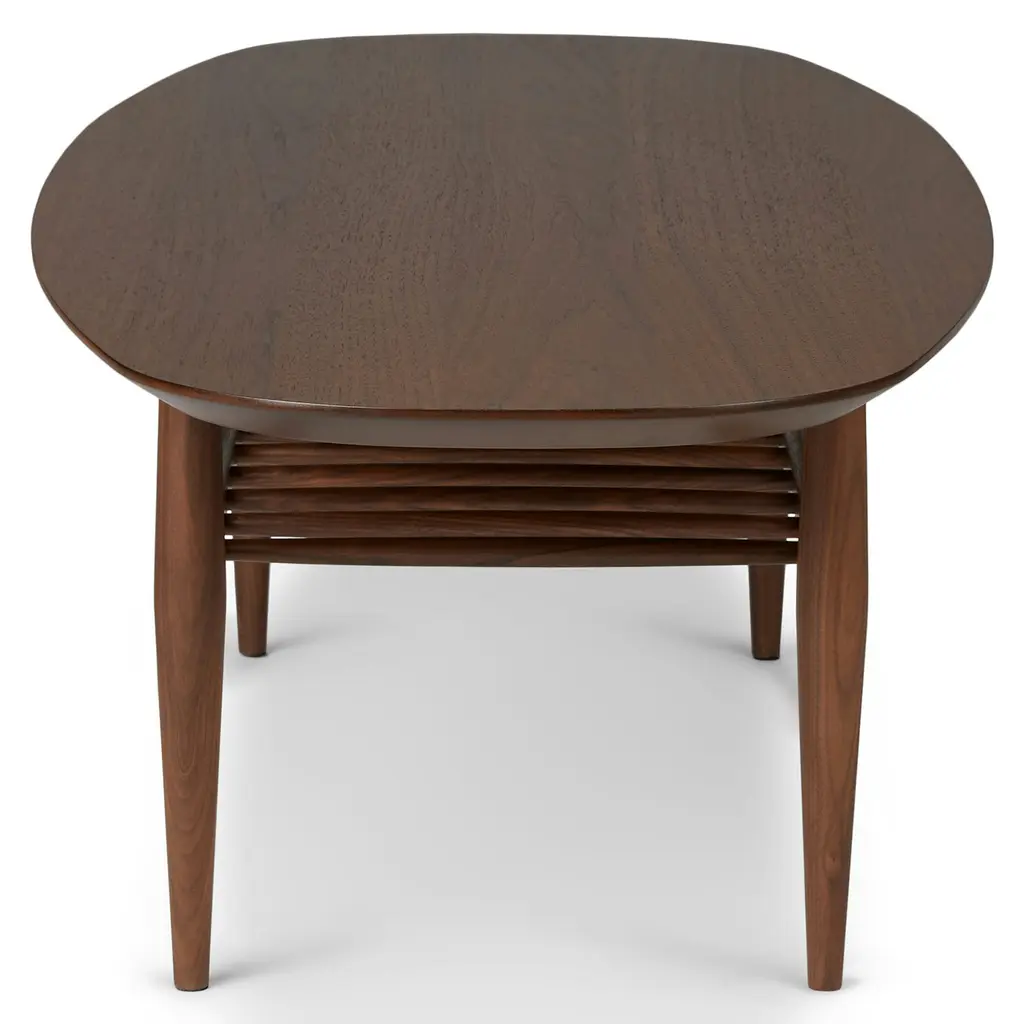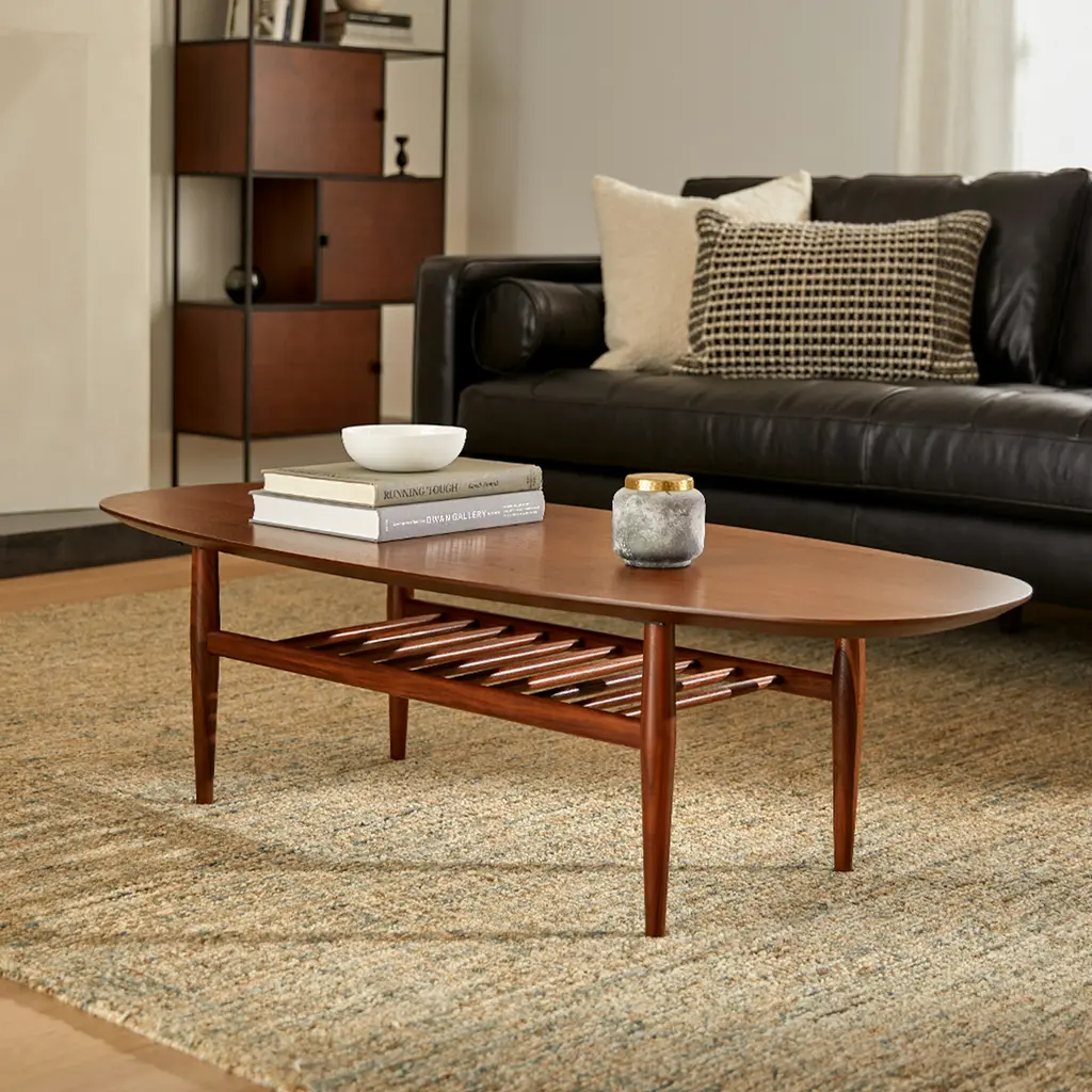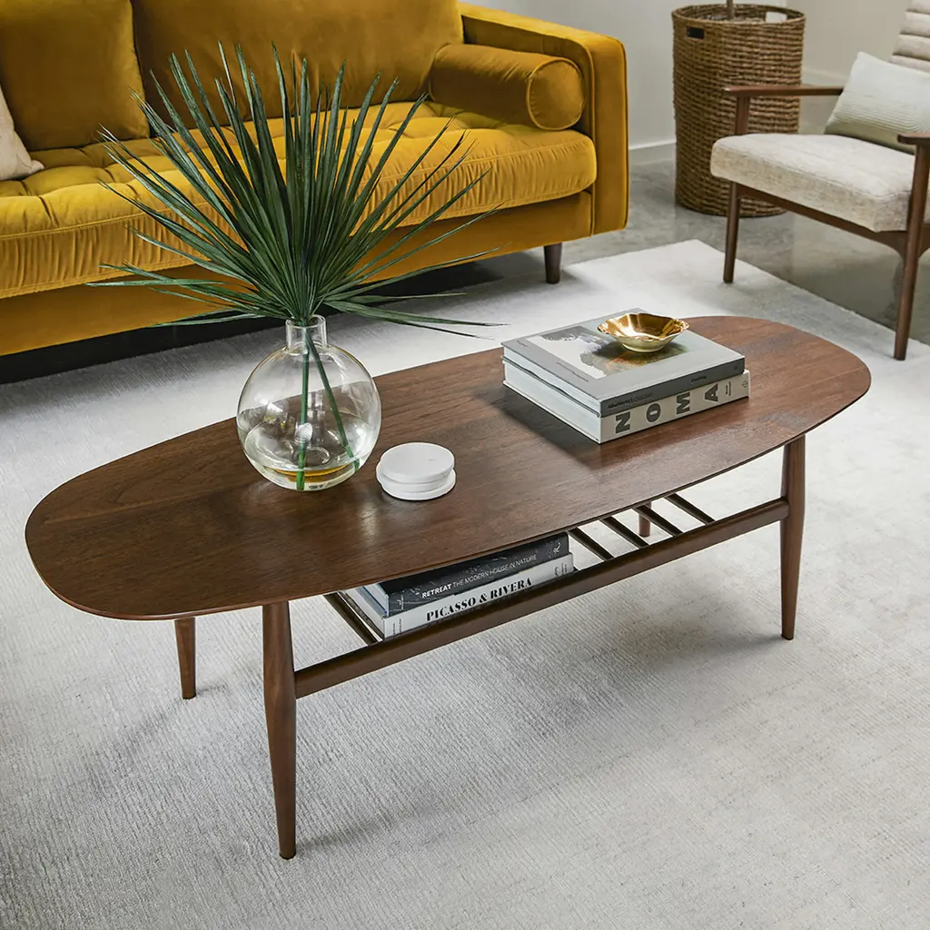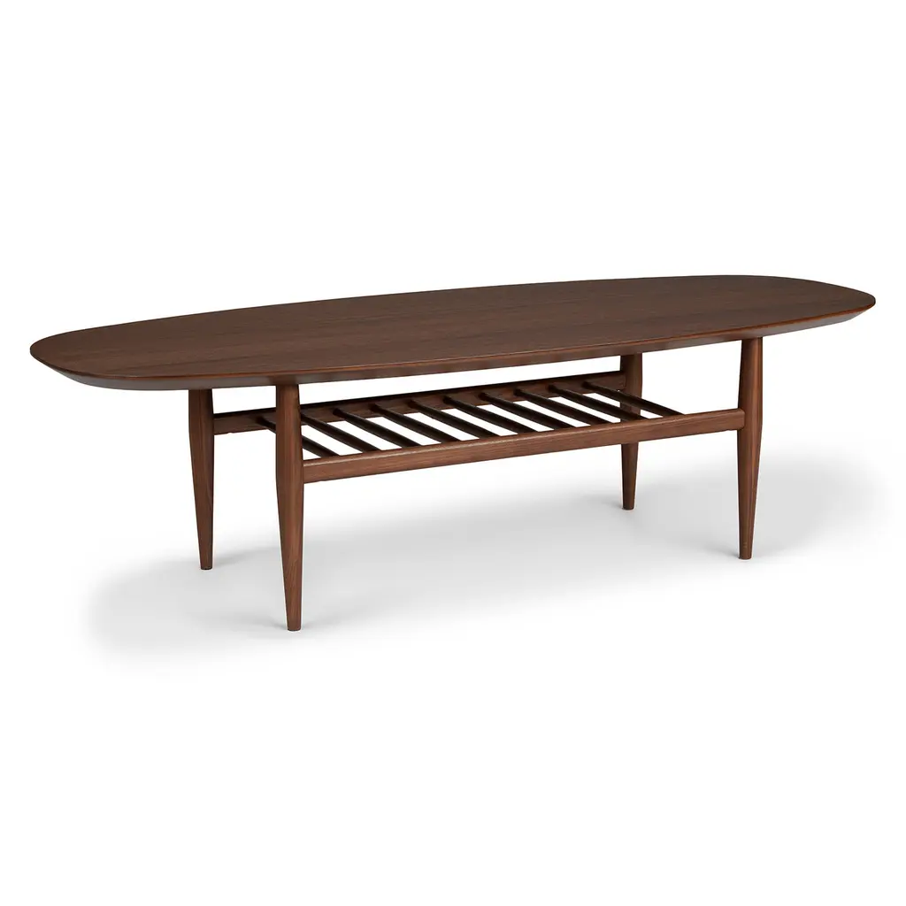 Surf’s up. The Lenia coffee table features an oval body reminiscent of the iconic mid-century surfboard shape. A solid wood base and spindle shelf gives you room to stash your latest design magazines, favorite architecture books, and that handmade ceramic bowl you picked up the last time you were in Hawaii. Cowabunga, dude.
