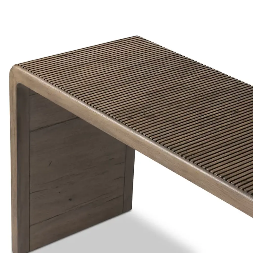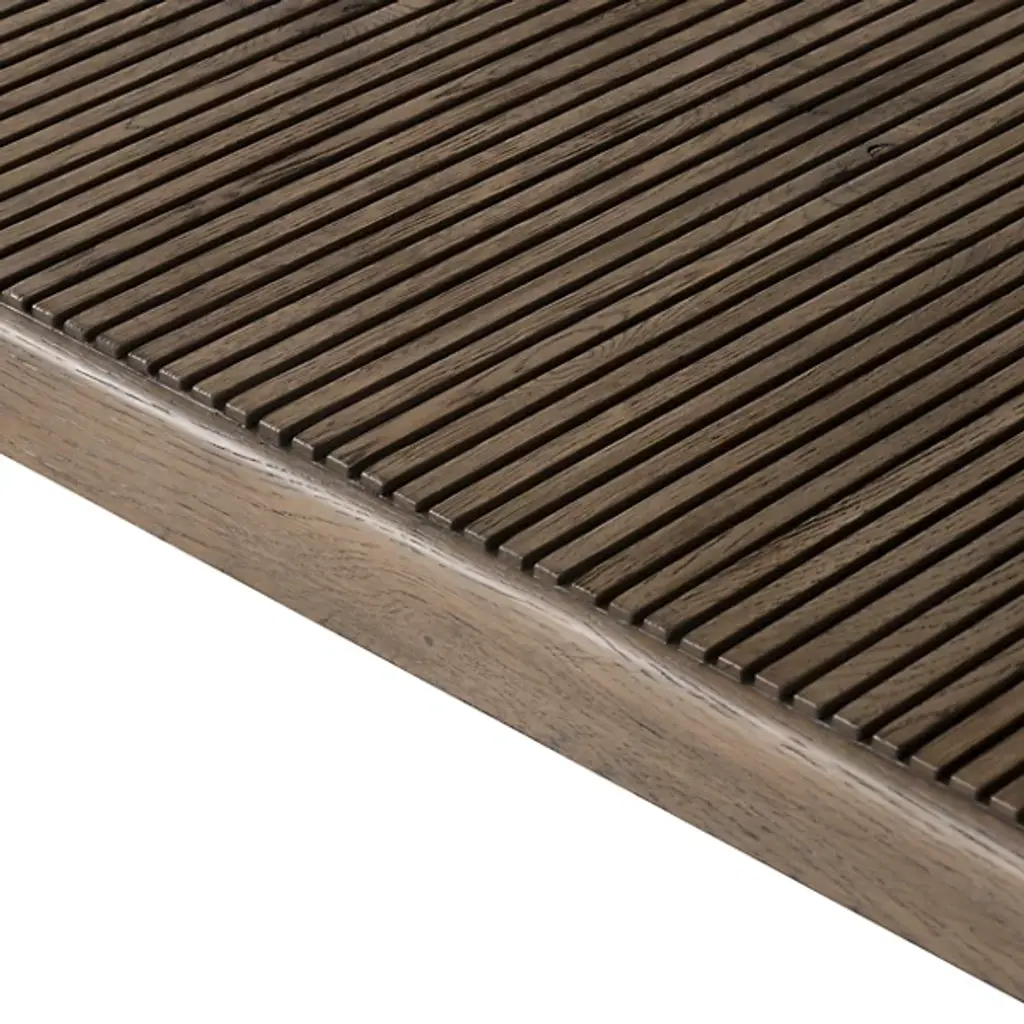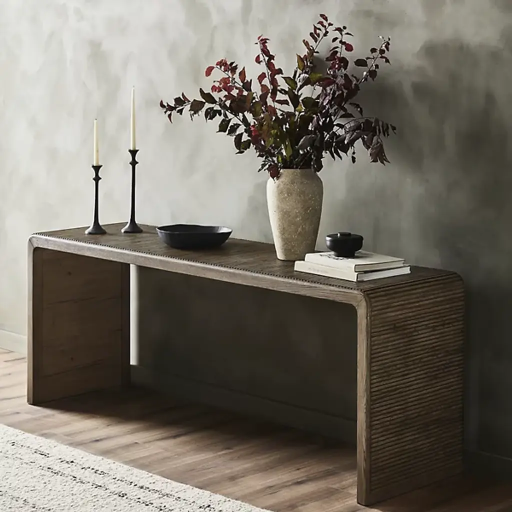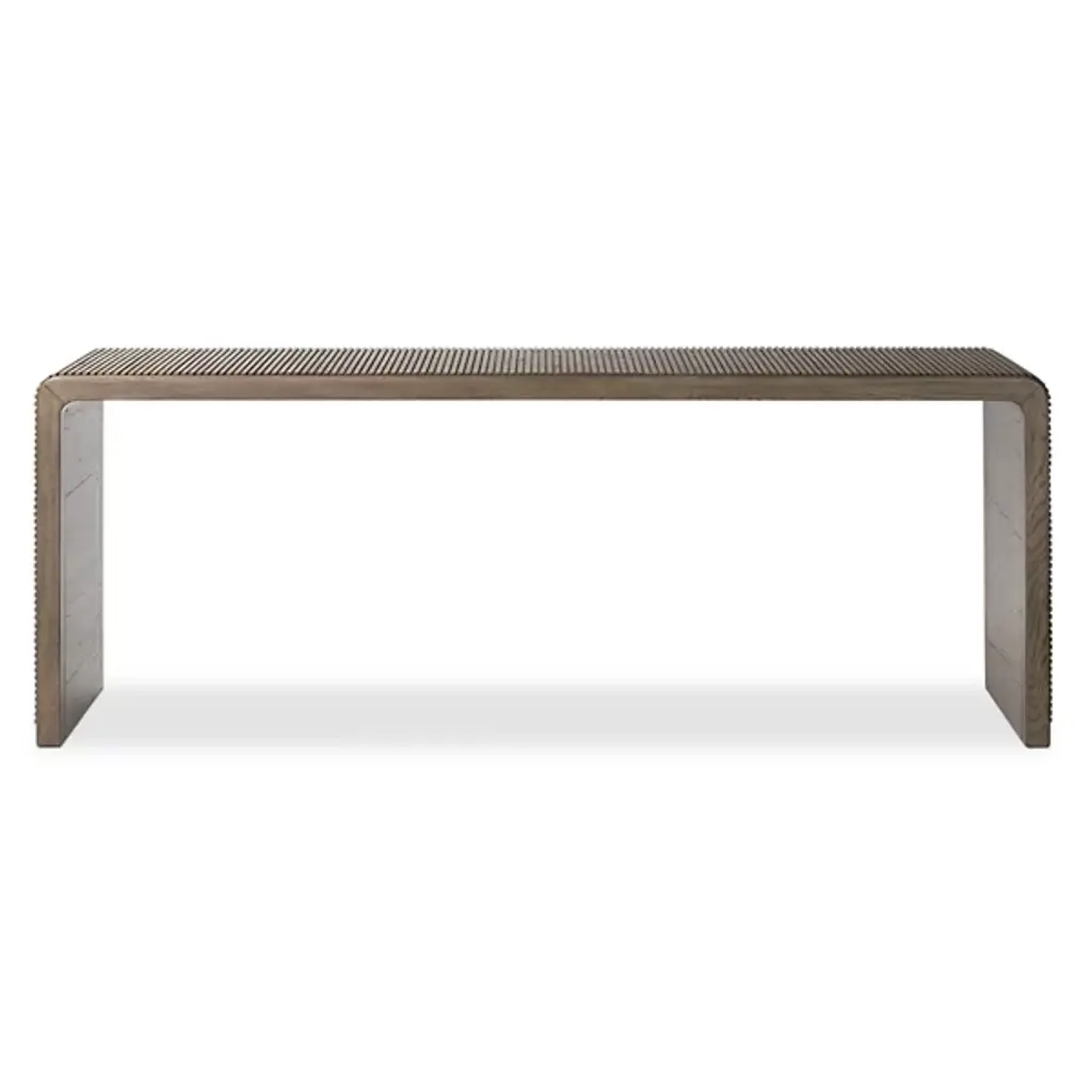 The Leo Console Table from Four Hands blends sophistication with organic charm. Featuring a linear design with gently rounded edges, this console table effortlessly combines contemporary aesthetics with a touch of natural allure. The open framework creates a sense of fluidity, while the ribbed texture adds a distinctive visual dimension. Crafted from solid oak, thick oak veneer, and oak plywood, Leo offers durability and a lasting presence in your space.