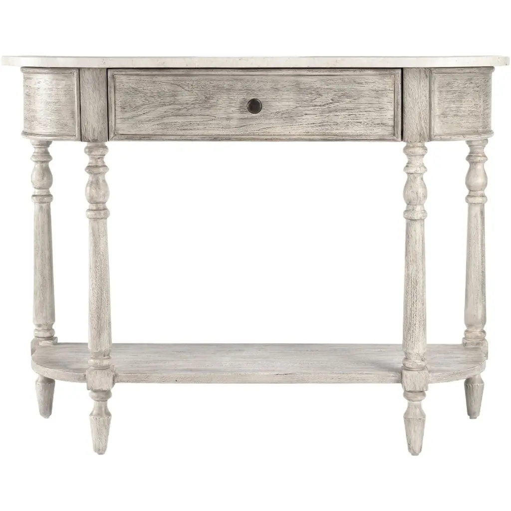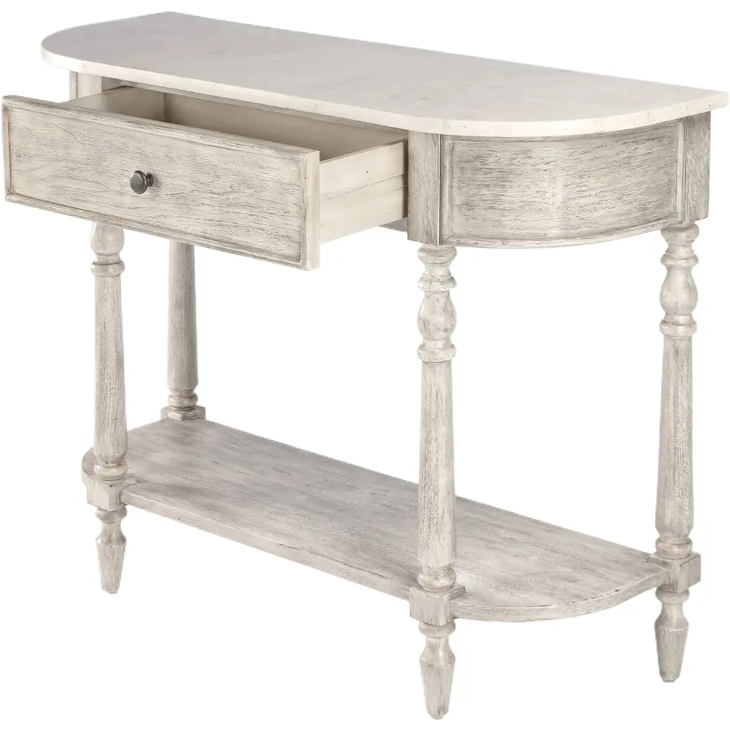 The Liam marble collection is a romantic blend of elegance and modern farmhouse charm. Crafted with exquisite attention to detail, it features a stunning natural marble top and solid wood construction, ensuring both durability and timeless beauty. Supported by gracefully hand-turned legs, it offers antique hardware and ample storage, making it a perfect addition to any living space. This collection invites you to experience the harmonious marriage of style and function, creating a serene and sophisticated ambiance in your home.