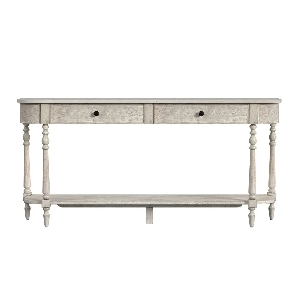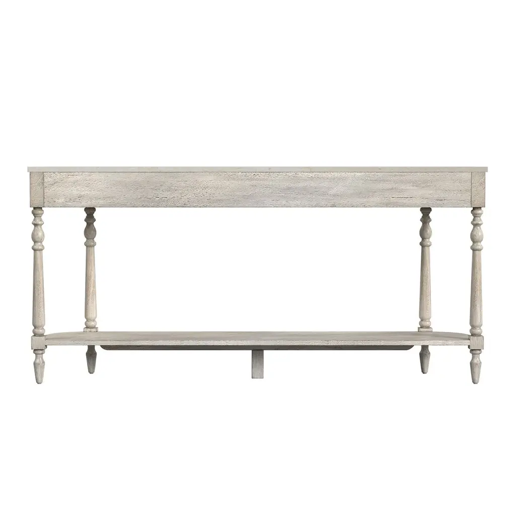 Liam 65" 2-drawer Marble Tope Console Table, Rustic Gray