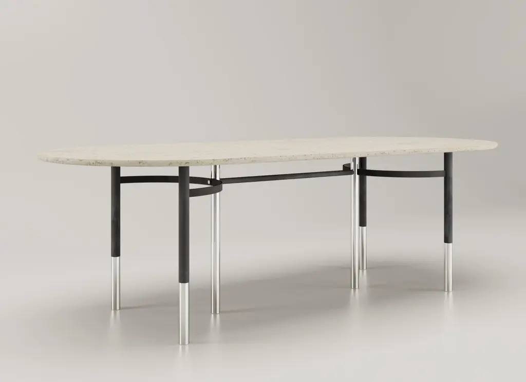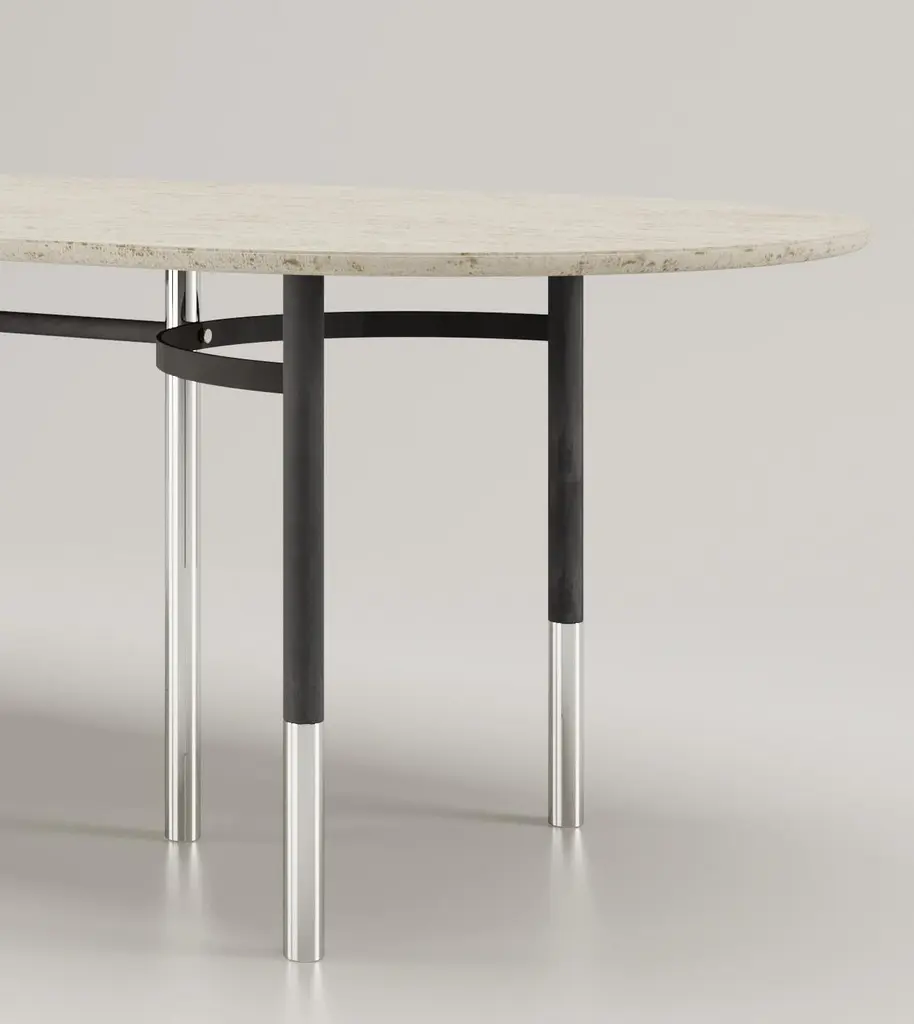 Liberty Table by Andrea BoniniLimited EditionDimensions: D 90 x W 220 x H 75 cm.Materials: Marble, Mirrored steel and Black steel.Made in Italy. Limited series, numbered and signed pieces. Custom size or finish on request. Also available in brass finish. Different marble options available: Palissandro tigrato, Palissandro blue, Palissandro royal, Verde Alpi, Travertine and Palissandro classic. Please contact us.The aim of the Edition Collection is to launch a collection of sculptural furnitureelements produced in a limited series which can be made exclusively by expert and specialized craftsmen.Each piece is intrinsically connected and portrays elegance through geometry and proportions. Meticulous detail of symmetry, bold and deep lines, virtuous and ample curves, cuts and grafts can be found in every single piece.Each product encloses the complexity of its production process in a pure and virtuous form.They are limited editions, each piece signed and numbered, appreciated as art or as design. They are the result of past experiences yet the keeper of future projects. The purpose of andreabonini edizioni? To tell a story through the use of materials between tangent reality and the world of dreams.Andrea Bonini seizes every detail that strikes his attention with a critical eye.A still image, imprinted in the mind, which becomes an idea through a process of mental elaboration and a fusion of scenarios. The cultural background in which Bonini was born is characterized by the timeless charm of a precious combination of two materials that enhance each other: metal and marble.His is a family of metal artisans for several generations and Bonini was born in a landscape which is the cradle of marble extraction and processing. The deep knowledge of these two fascinating and natural elements leads him to often insert them in his works; he prefers them in their authentic finishes and shades, sometimes raw or with their natural imperfections, typical of this material.Adopted by the city of Milan; here he gains his first success and initiates important collaborations. Bonini listens and follows the artistic trails left by his masters; from Carlo Scarpa to Franco Albini and Christian Liaigre.Andrea Bonini is sensitive and concentrated, with meticulous commitment he follows every phase of his products and his interiors; he is personally active in dealing with the craftsmen and his sharp pencil captures any variation or improvement.During his career he chooses to design for companies with high artisanal criteria; the same intention is reflected in his interior projects, attention to every detail with a sartorial approach recognizable on the international scene. Bonini has successfully completed and is currently working on projects in Italy, China, the United Kingdom and the French Riviera.To date, his studio atelier is located in Milan in via Montenapoleone, core of Italian excellence. It is a small yet refined ambience; a boutique with contemporary taste.Here his pencil gives life to all his projects, elaborated in every detail together with his team, producing a strongly recognisable and prestigious result.
