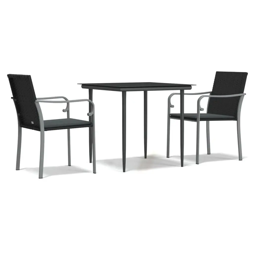Lila 23.5'' Square Glass Metal Table With 2 Rattan Stack Chairs