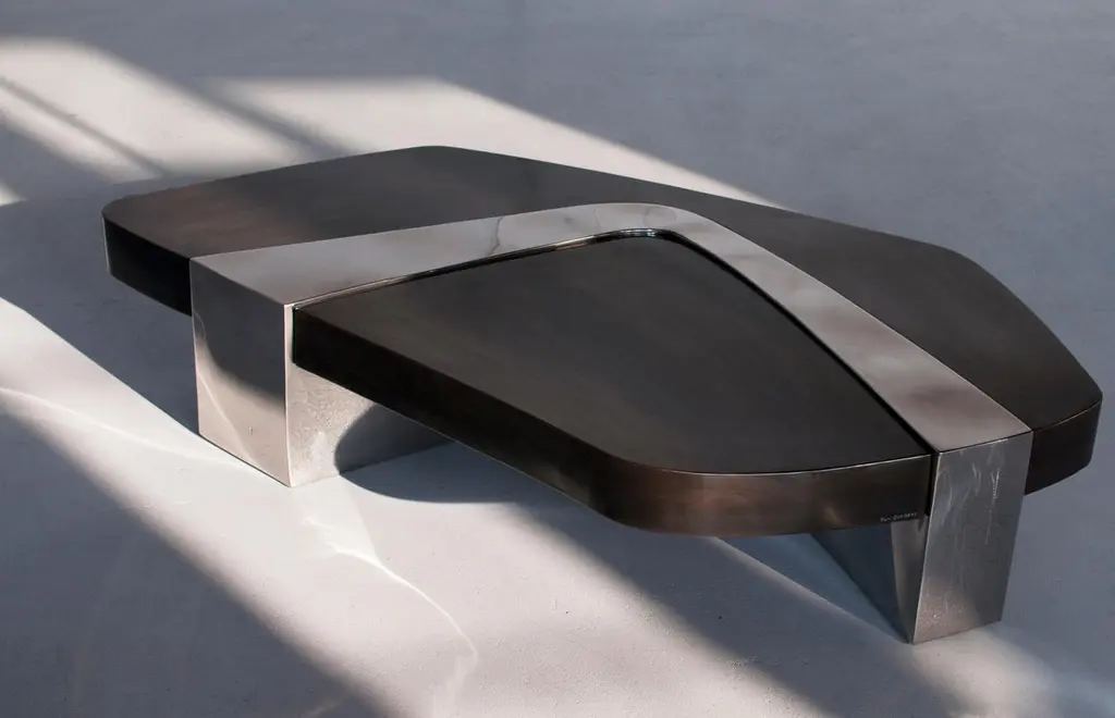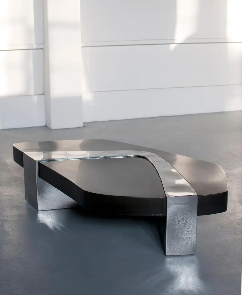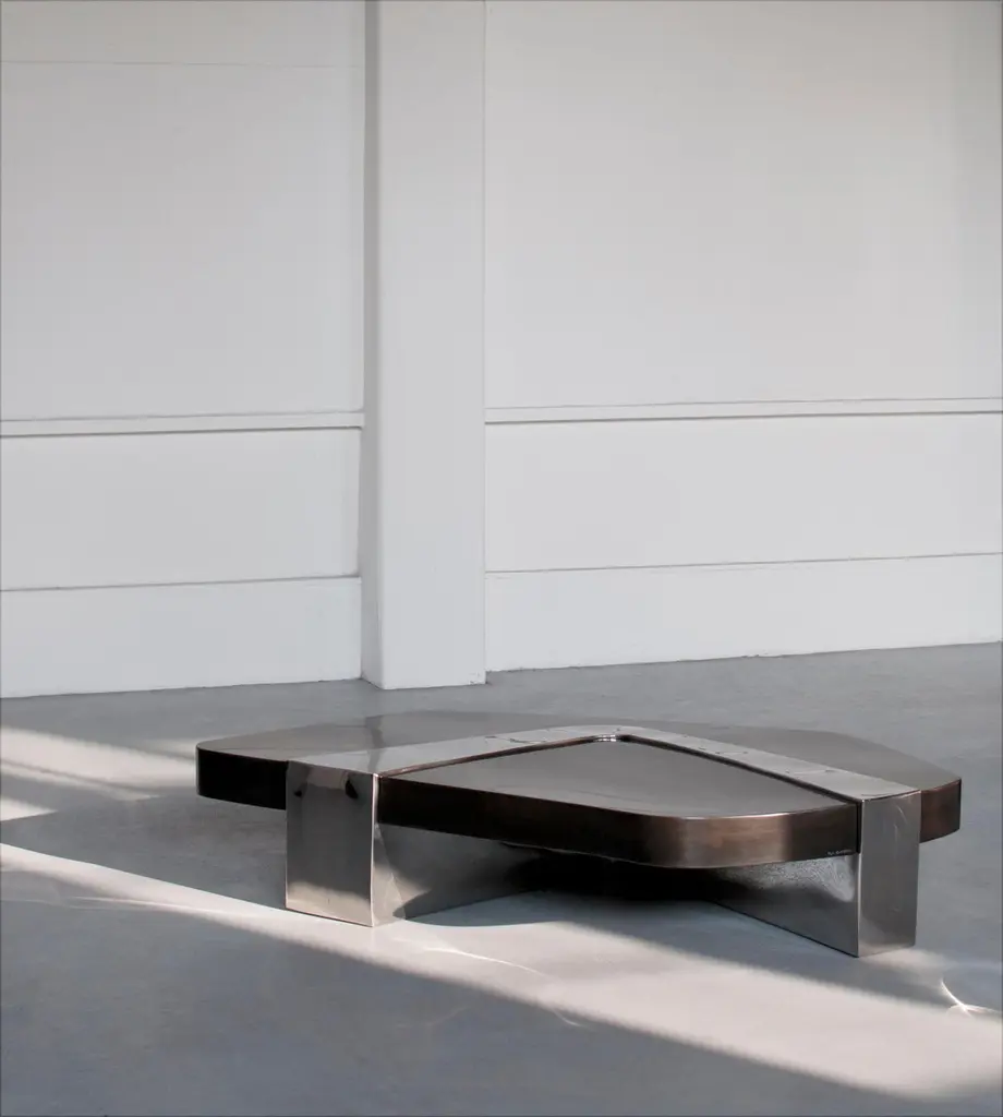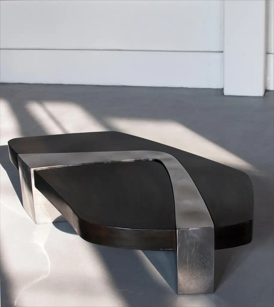 Limited Edition Steel London Table by Pol QuadensDimensions : 35 x 180 x H95 cmMaterials : Steel Patinated black (chocolate) and varnished satin mat + Stainless Steel Mirror PolishedWeight : 40 kgPol Quadens was born in Brussels. His father was active in the fields of composites the metal industry, and the world of materials, therefore, surrounded Pol since his early childhood. After his artistic studies, he starts restoring vintage cars. This experience has allowed him to gain strong practical skills and a deep knowledge of all materials.In 1987, he made his first creations and production of objects. His sensitivity and passion for the arts led him to create functional artworks. His CD shelf has sold more than 100,000 pieces and has become iconic in its category.