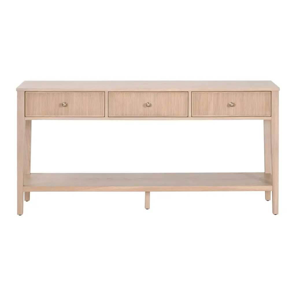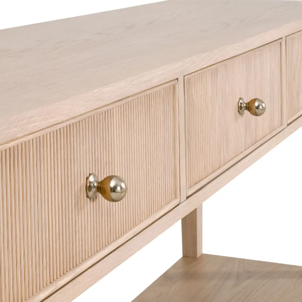 Linden Fluted 3-drawer Oak Console Table, Natural