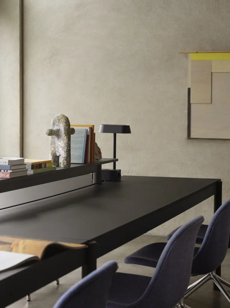 The Linear System Table Power Outlet is simple in its design and functionality: You simply plug in and go from there. The elements are designed in lines that echo the Linear System Series, made in sheet metal for an elegant touch. The Table Power Outlet can be mounted on the Linear System Table and has two outlets to which standard plugs can be connected as well as a USB and USB-C plug.