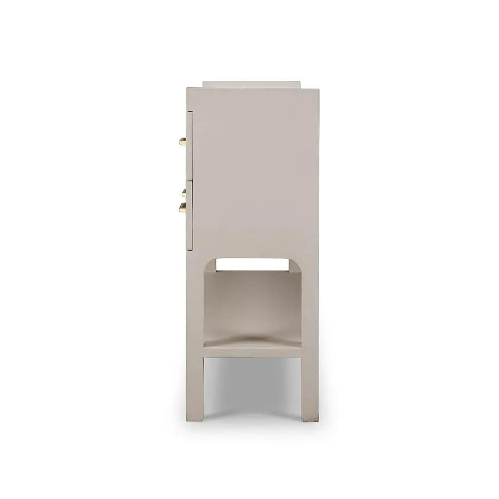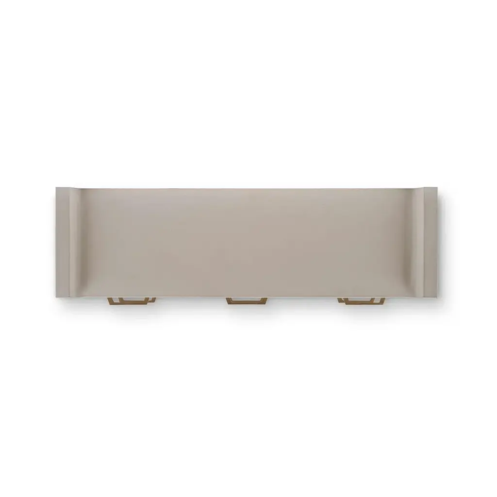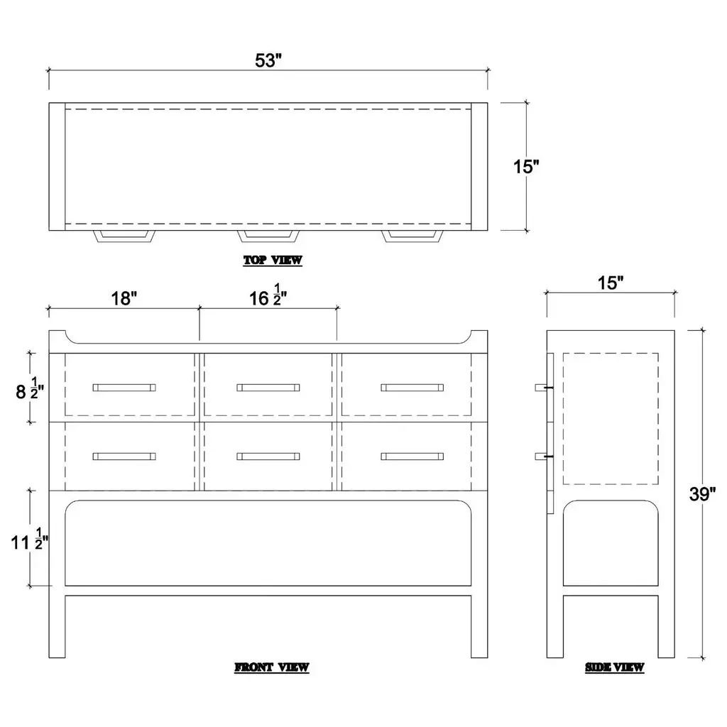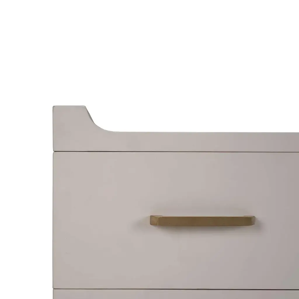 Crafted with a minimalist design, this table features clean lines and a chic, putty-colored linen wrap that perfectly captures the essence of Scandinavian style. The six spacious drawers, adorned with brass handles, provide ample storage for your essentials, making it both a stylish and functional addition to your living room, hallway, or entryway. Built with high-quality materials, this console table combines durability with contemporary aesthetics. The lower shelf offers additional space for storage or display, allowing you to keep your decor items or everyday necessities within easy reach. Dimensions: 53" W x 16" D x 39" H