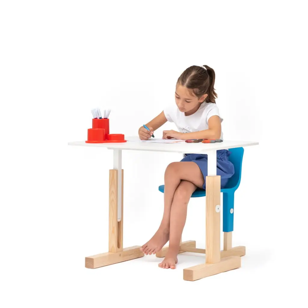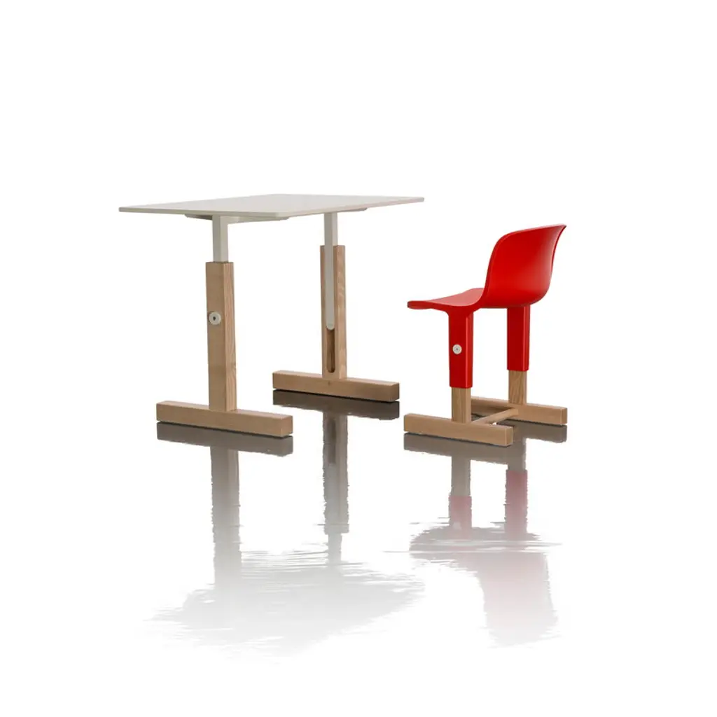 The Little Big table by Magis is a multi-purpose table, meant for the family's smallest ones to do homework, color a coloring book, make art or have a party with friends. As the name suggests, Little Big is designed for smaller and bigger children: the durable but lightweight laminated tabletop is attached to sturdy ash legs, the height of which can be adjusted as the child grows. Little Big is designed by the Swiss design studio BIG-GAME, who wanted to create a multifunctional and durable table – effectively an adult table but in a children's size.