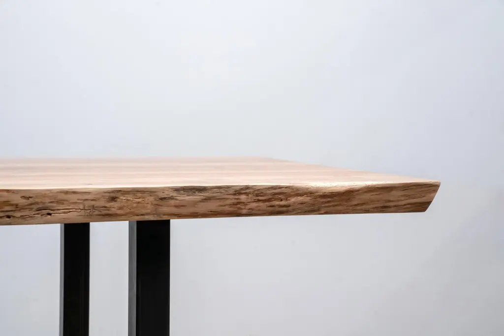Live Edge Pecan Table Clear Finish On Modern Black Steel Square Base