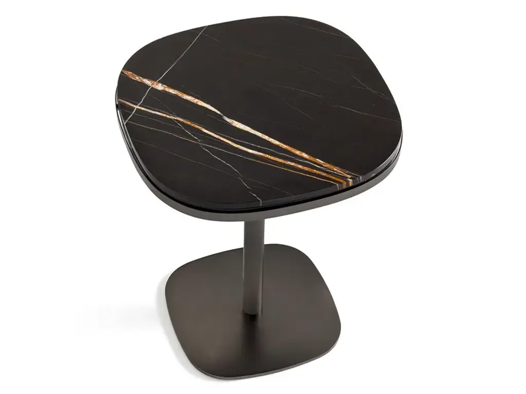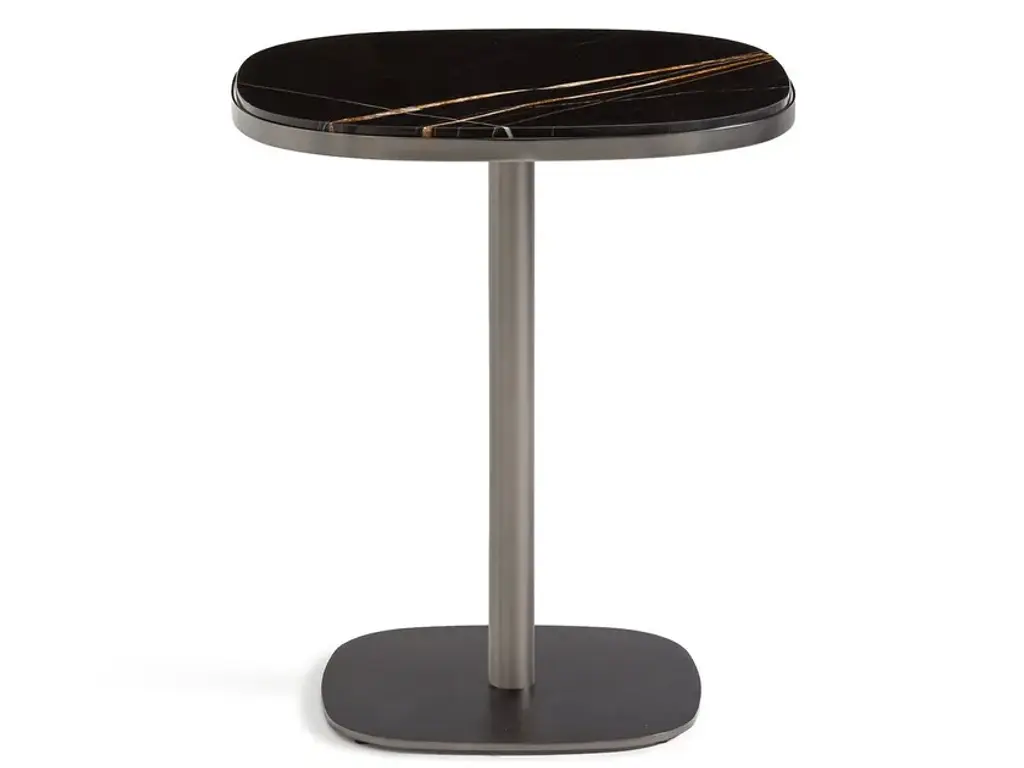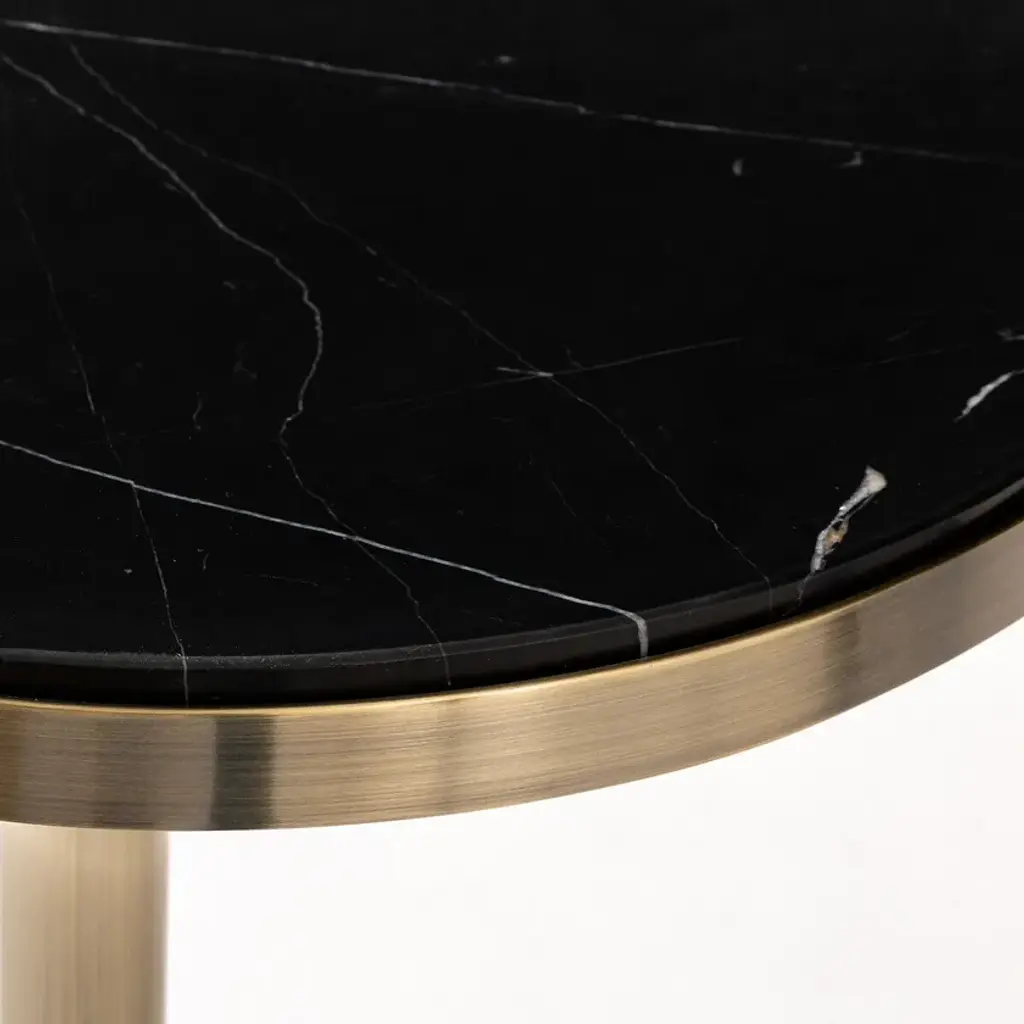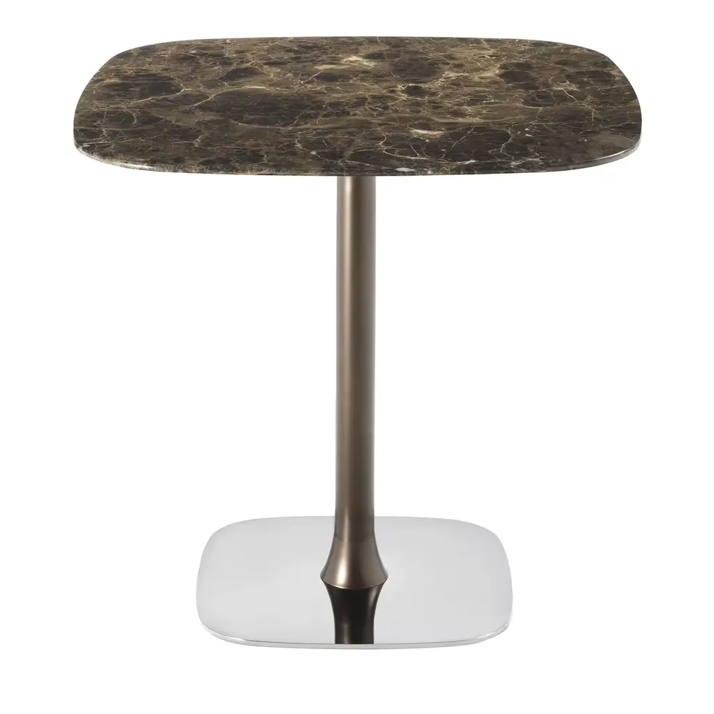 L'iconique table de bistrot revisitée et modernisée avec son plateau en marbre brun organique qui se marie très bien avec son piètement en métal finition nickel noirci. Lixfeld peut accueillir deux personnes. Détail de fabrication : le plateau en marbre est entouré de métal. Une table signée AMPM.Plateau en marbre brun. Chaque pièce étant unique, les marbrures peuvent être plus ou moins marquées d'un produit à l'autre.Rebord et base en métal finition nickel noirci.Base en métal finition laiton vieilliPour 2 couverts.
