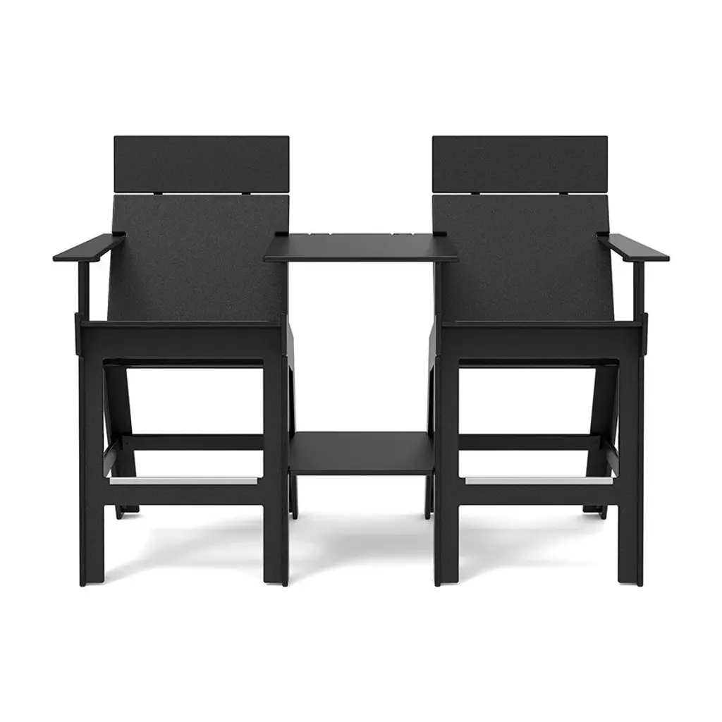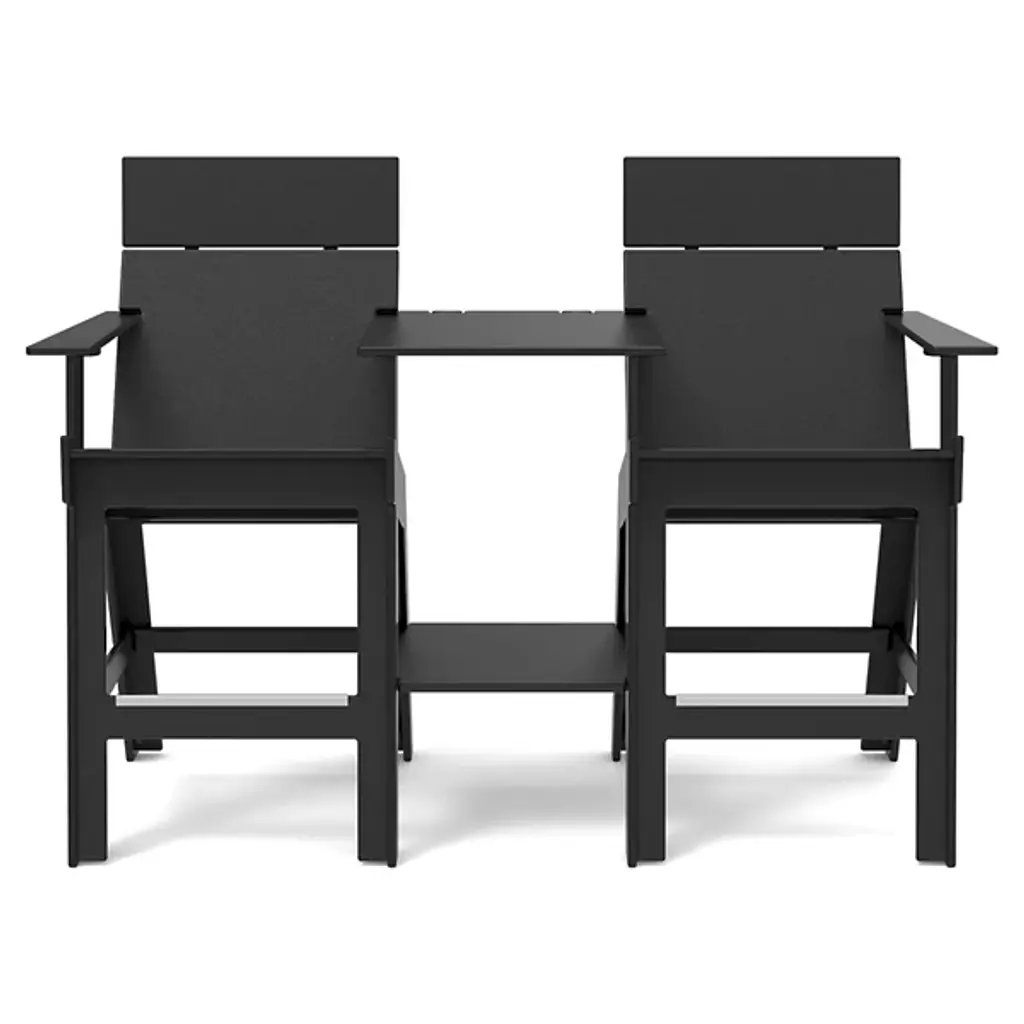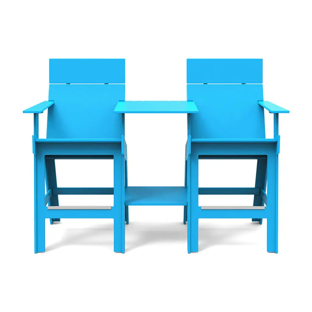 Hi-Rise Chairs with Bridge Set is the combination of a Hi-Rise Chair, and an Armless Hi-Rise Chair with Bridge Kit. Why? Because the table is integrated, and not set on top of an existing chair arm, it makes the table and arm the same height, and feel more comfortable when resting both your arms. It also prevents extra parts from going to waste when someone wants to add a chair and table for a combo. Instead we reuse the chairs arm for the second chair. Because sharing is caring. Features UV INFORMATION: RICHLITE: LOW-IMPACT MANUFACTURING: