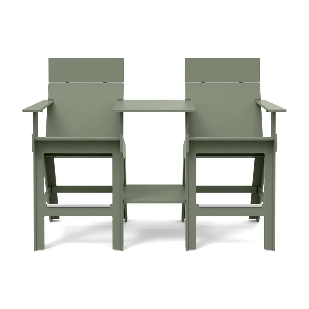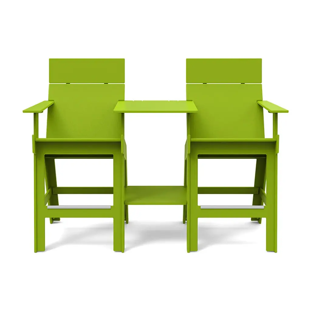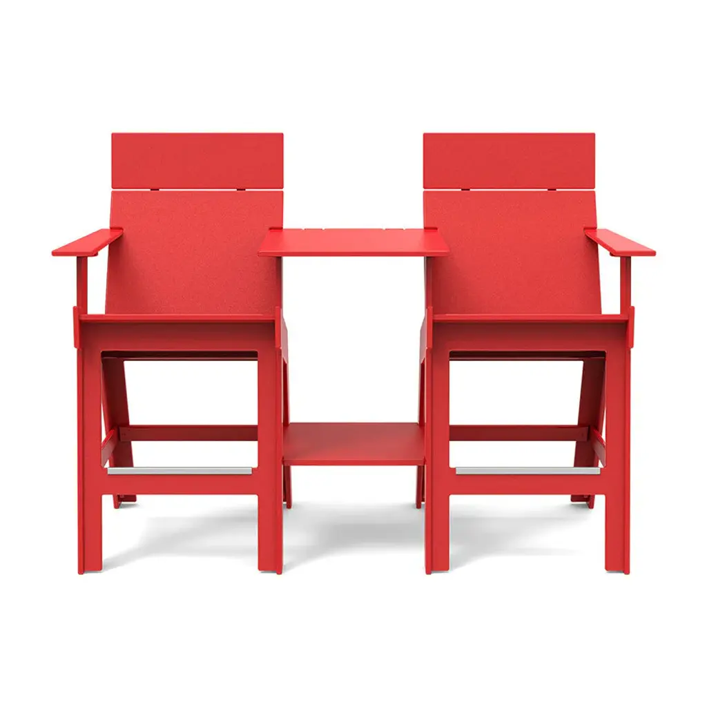 Hi-Rise Chairs with Bridge Set is the combination of a Hi-Rise Chair, and an Armless Hi-Rise Chair with Bridge Kit. Why? Because the table is integrated, and not set on top of an existing chair arm, it makes the table and arm the same height, and feel more comfortable when resting both your arms. It also prevents extra parts from going to waste when someone wants to add a chair and table for a combo. Instead we reuse the chairs arm for the second chair. Because sharing is caring. Features UV INFORMATION: RICHLITE: LOW-IMPACT MANUFACTURING: