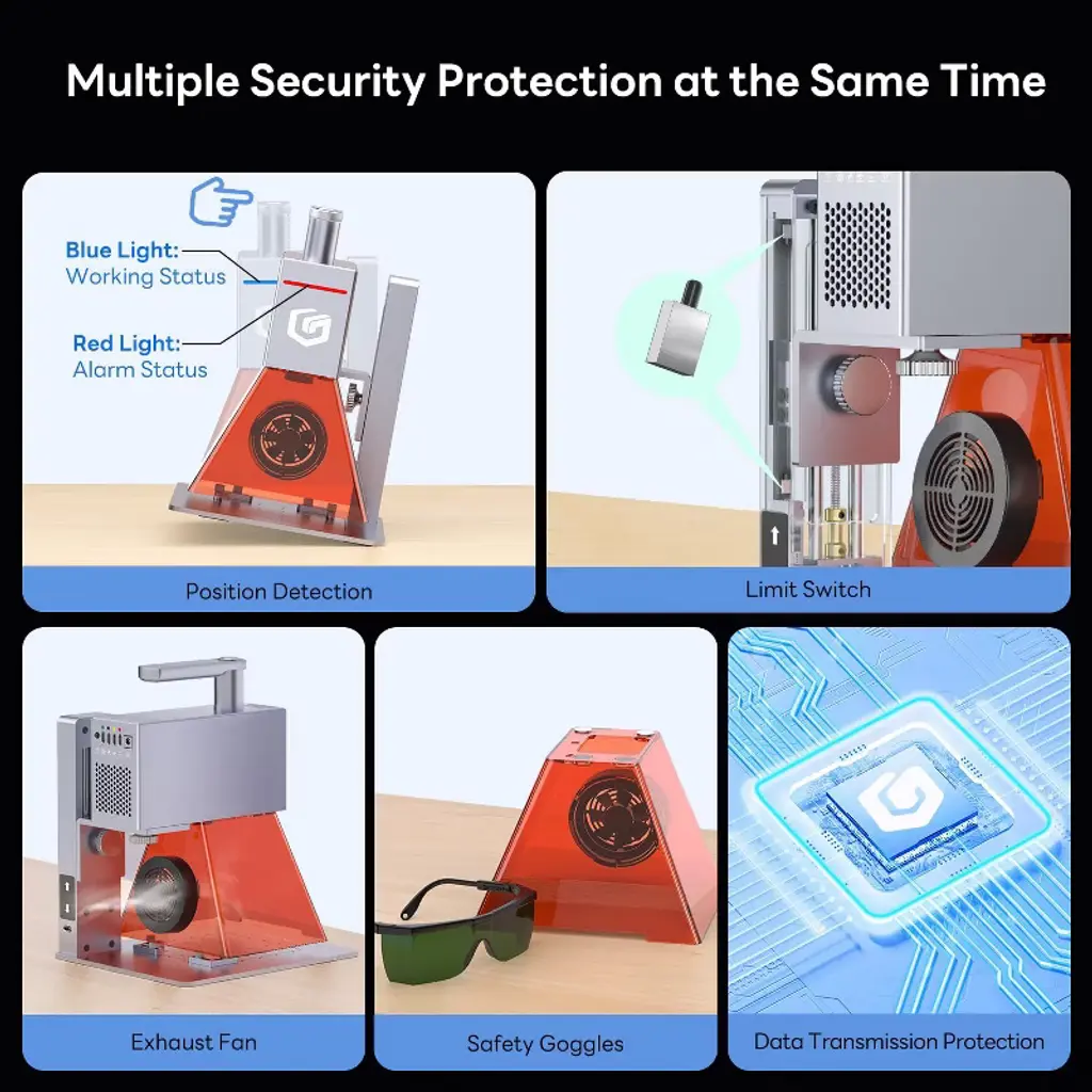 Compact 6W portable laser engraver with 5000 mm/s speed and 0.01 mm precision — cuts 6 mm basswood and 4.5 mm acrylic, works at any angle, and is compatible with LightBurn, LaserGrbl, and Laserburn App.