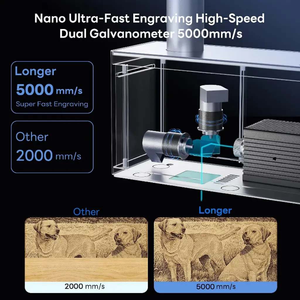 Longer Nano Portable Laser Engraver, 5000 Mm/s Speed, 0.01 Mm Precision, Cuts 6 Mm Wood & 4.5 Mm Acrylic, Compatible With Lightburn