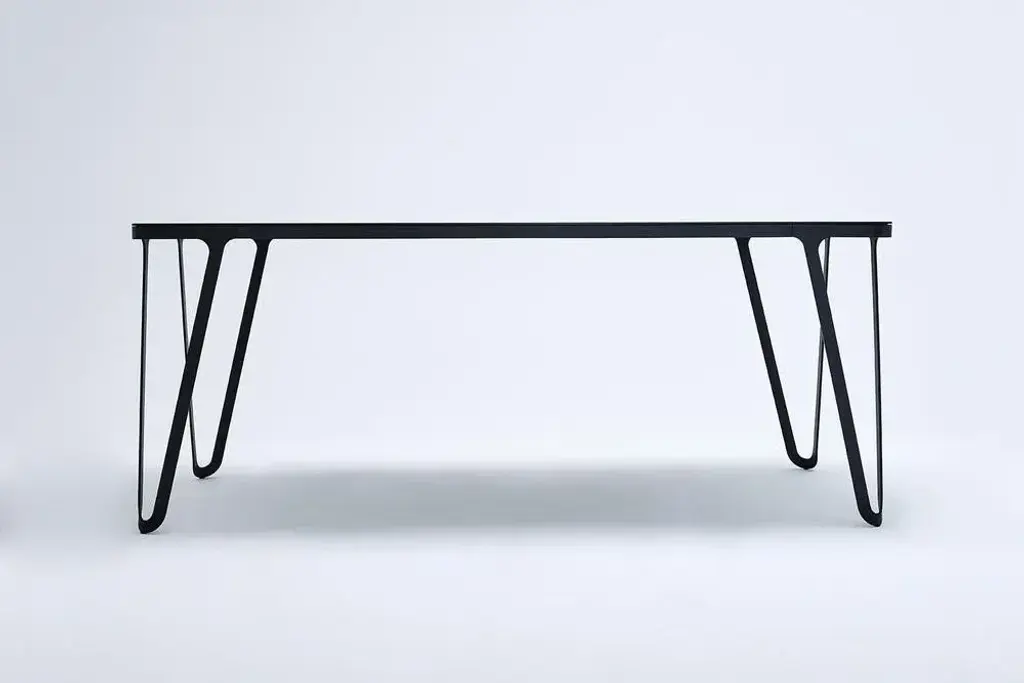 Loop table 200 ash by sebastian scherer dimensions: d200 x w90 x h74 cm materials: oak, aluminium, wood weight: 57.8 kg also available: colours:solid wood (matt lacquered or oiled): black and white stained ash / natural oak / american walnut. Frame (matt): snow white / light sand / space blue / graphite grey /dark bronze / ink black. Raw aluminium (not powder coated). Black plastic glides included. this piece is attributed to the mentioned designer/maker. It has no attribution mark and no official proof of authenticity, however it is well documented in design history. I take full responsibility for any authenticity issues arising from misattribution