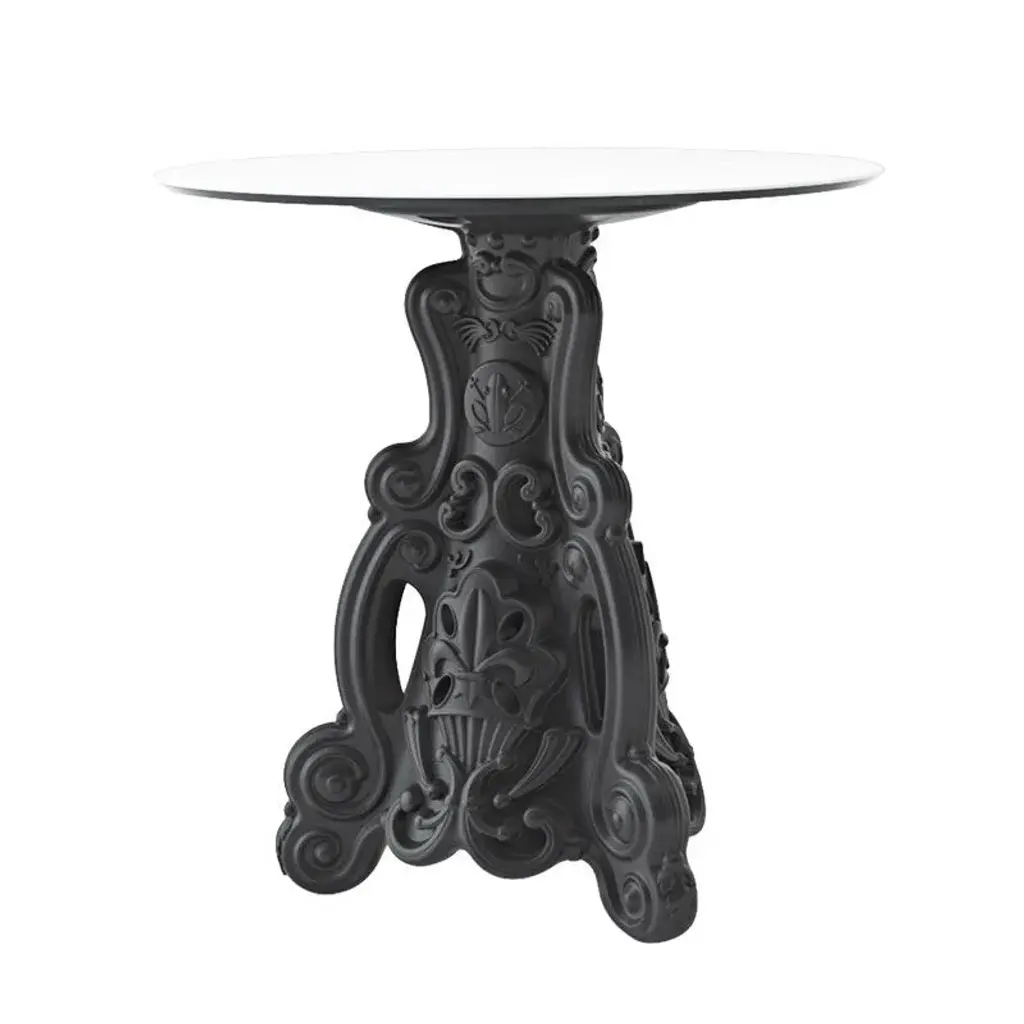 Lord of Love is a table that reminds Italian baroque style, rich in details. The table is elegant thanks to its mix of different materials: the base is in polyethylene, that reminds the pop, vintage and ironic style of the whole Design Of Love collection, while the white top is in HPL, that gives a touch of refinement to Lord of Love. Lord of Love is a table ideal to original contract and unforgettable events, because the table is contemporary, colourful and elegant at the same time, and it is ideal to indoor and outdoor settings. It is available also in luminous version.Base finishes:- Standard color- Lacquered- Matt lacquered- Light White (1 x 15W - E27)Top finish- White HPL with black profile- White HPL with white profile