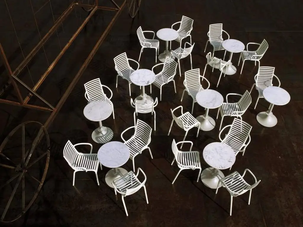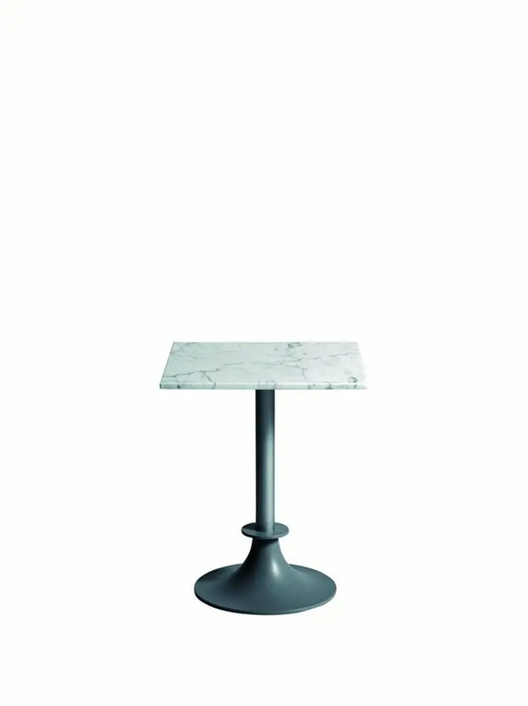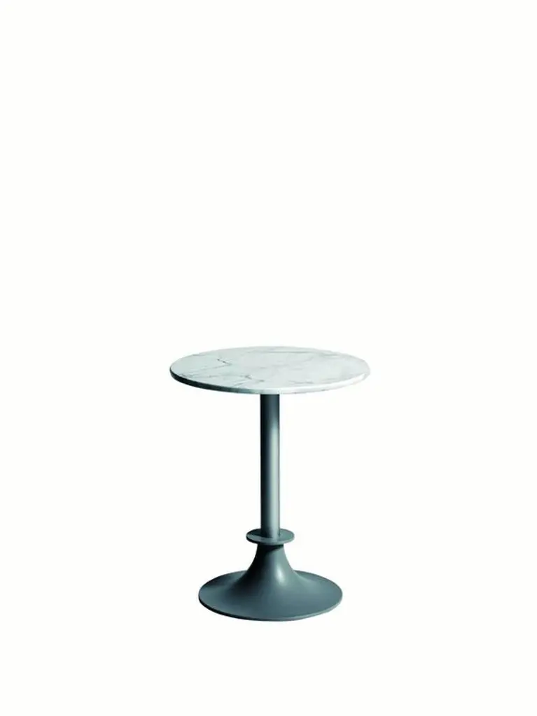 LORD YI tables by Philippe Starck for DriadeGrey or black anthracite painted aluminum base and column with round or rectangular top.Top available in white Calcutta Carrara marble or black Marquina marble, for indoor/outdoor use.A 9 kg cement counterbalance can be available on demand for extra $190.
