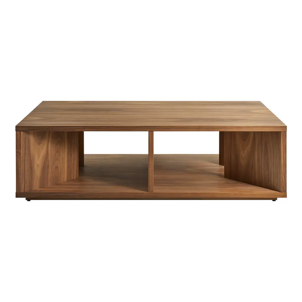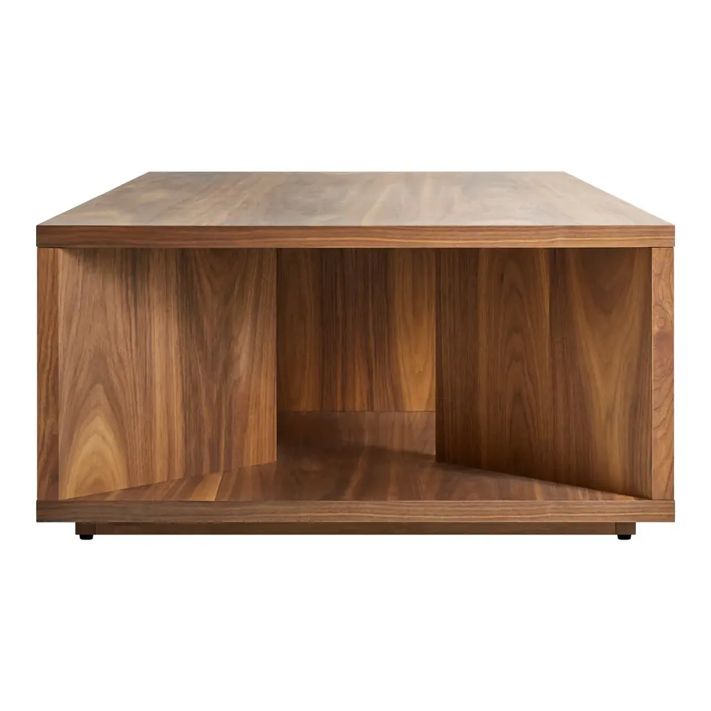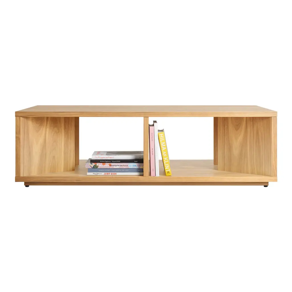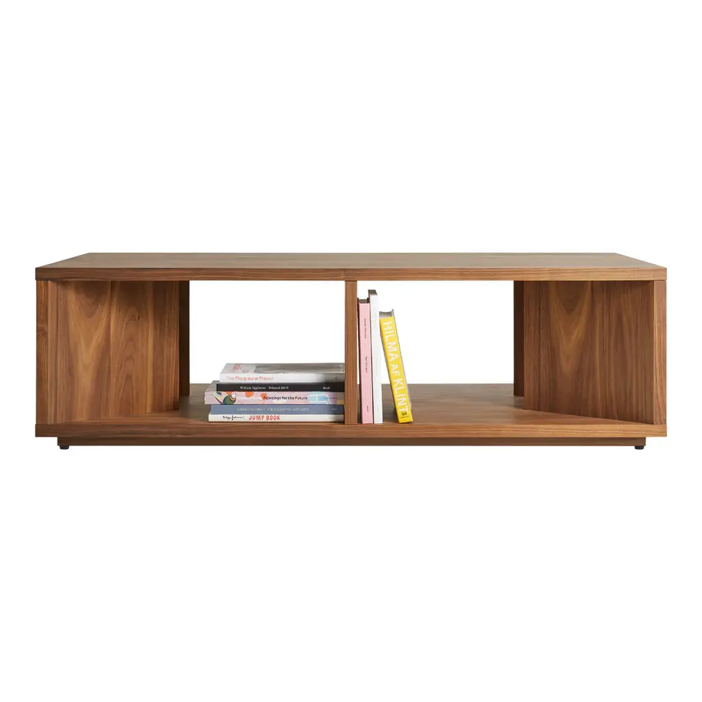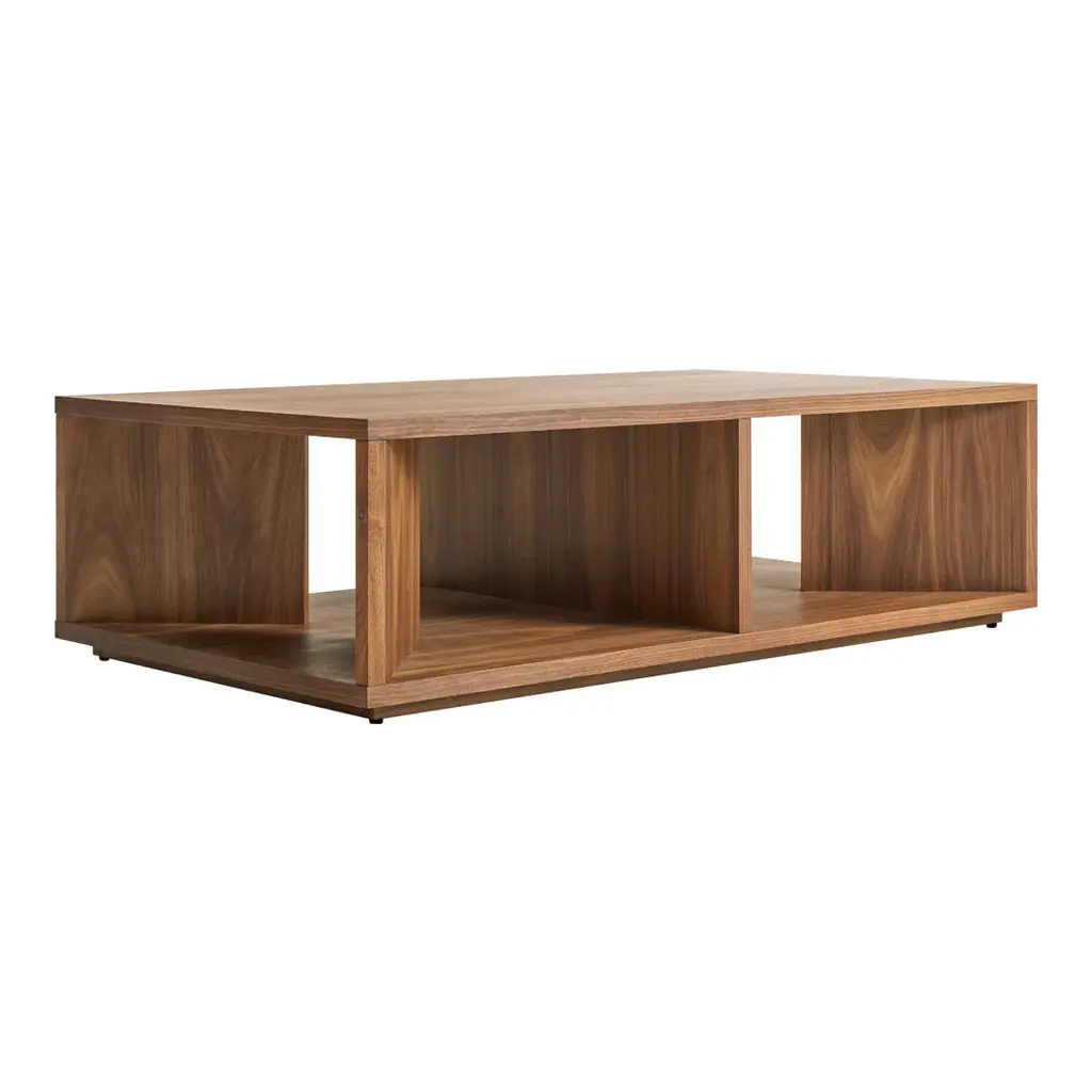 The Low Space Coffee Table by Blu Dot transforms the traditional coffee table concept into an architectural statement piece, ideal for modern living rooms, spacious lofts, or design-forward family spaces. This innovative table exemplifies Blu Dot's commitment to combining sculptural beauty with practical functionality, featuring a generous tabletop crafted from your choice of premium plain-sliced walnut veneer, white oak veneer, or sophisticated black-painted ash veneer over engineered wood.The table's defining characteristic lies in its thoughtfully designed interior compartments, which create intriguing visual corridors that provide both aesthetic interest and practical storage solutions. The geometric precision of the wood partitions delivers an airy, open feel while offering organized spaces for magazines, remote controls, or decorative objects—visible from every angle and bringing intentional design to formerly overlooked coffee table contents.Environmental consciousness remains central to Blu Dot's design philosophy, evidenced by the walnut and white oak versions being finished with Rubio Monocoat—a solvent-free, zero VOC hardwax oil that maintains the wood's natural beauty while providing durable protection. Practical details include adjustable feet glides for perfect leveling on any surface, while the BIFMA rating confirms the table's commercial-grade durability, making it suitable for high-use environments despite its refined appearance.For the design enthusiast who appreciates furniture that functions as both practical surface and sculptural art, the Low Space Coffee Table delivers an exceptional balance of form, function, and visual intrigue. Whether minimally styled or filled with curated collections, this versatile centerpiece anchors your living space with Blu Dot's signature blend of visual sophistication and functional intelligence that distinguishes truly remarkable contemporary design.
