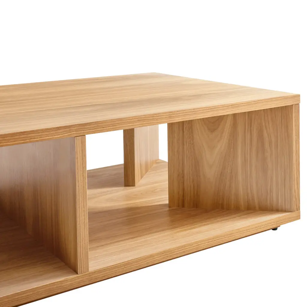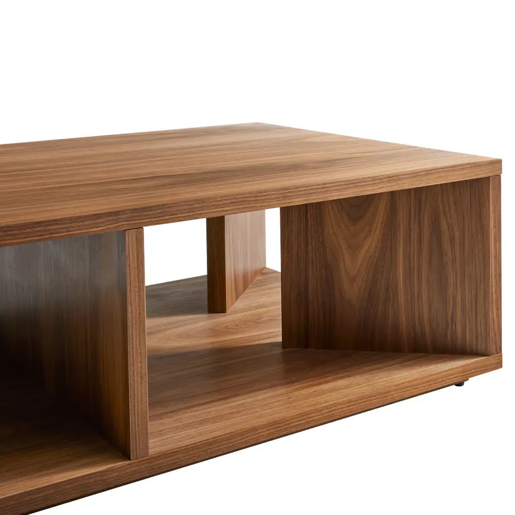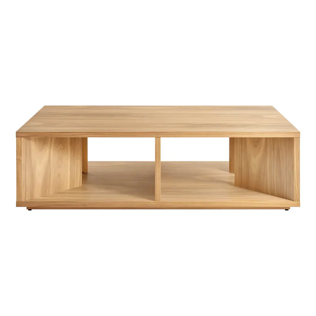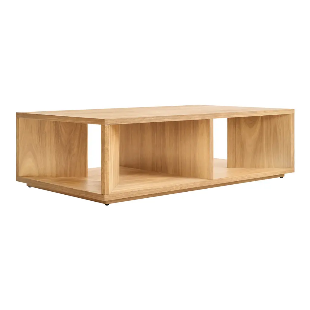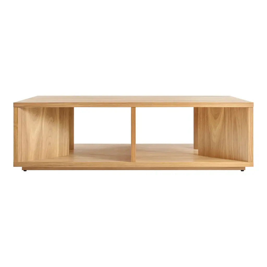 The Low Space Coffee Table by Blu Dot transforms the traditional coffee table concept into an architectural statement piece, ideal for modern living rooms, spacious lofts, or design-forward family spaces. This innovative table exemplifies Blu Dot's commitment to combining sculptural beauty with practical functionality, featuring a generous tabletop crafted from your choice of premium plain-sliced walnut veneer, white oak veneer, or sophisticated black-painted ash veneer over engineered wood.The table's defining characteristic lies in its thoughtfully designed interior compartments, which create intriguing visual corridors that provide both aesthetic interest and practical storage solutions. The geometric precision of the wood partitions delivers an airy, open feel while offering organized spaces for magazines, remote controls, or decorative objects—visible from every angle and bringing intentional design to formerly overlooked coffee table contents.Environmental consciousness remains central to Blu Dot's design philosophy, evidenced by the walnut and white oak versions being finished with Rubio Monocoat—a solvent-free, zero VOC hardwax oil that maintains the wood's natural beauty while providing durable protection. Practical details include adjustable feet glides for perfect leveling on any surface, while the BIFMA rating confirms the table's commercial-grade durability, making it suitable for high-use environments despite its refined appearance.For the design enthusiast who appreciates furniture that functions as both practical surface and sculptural art, the Low Space Coffee Table delivers an exceptional balance of form, function, and visual intrigue. Whether minimally styled or filled with curated collections, this versatile centerpiece anchors your living space with Blu Dot's signature blend of visual sophistication and functional intelligence that distinguishes truly remarkable contemporary design.