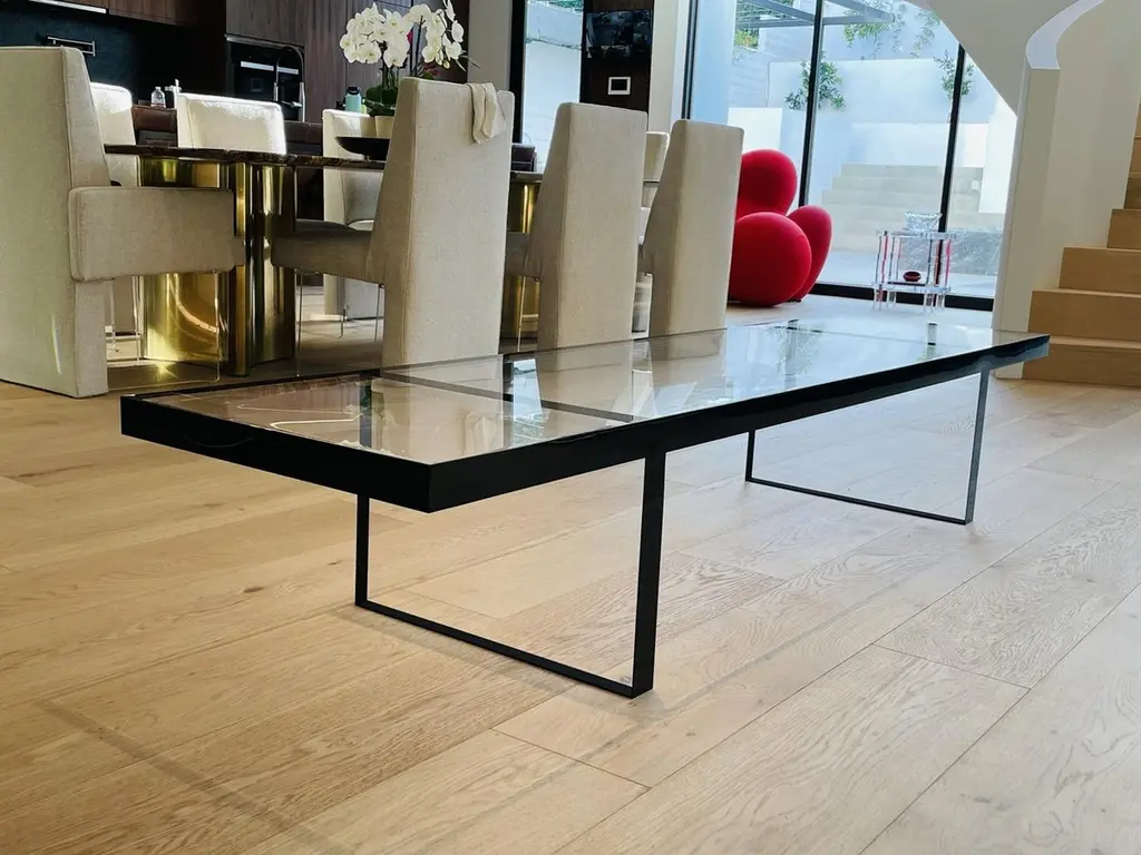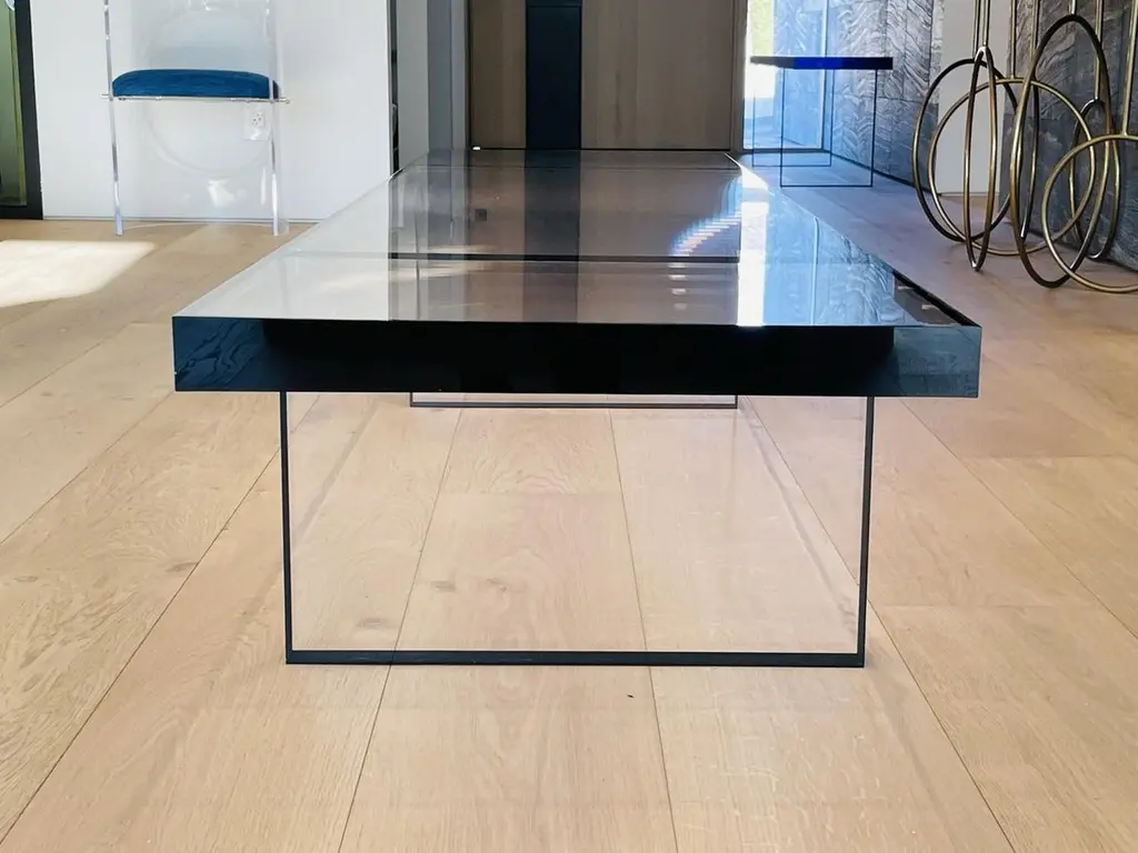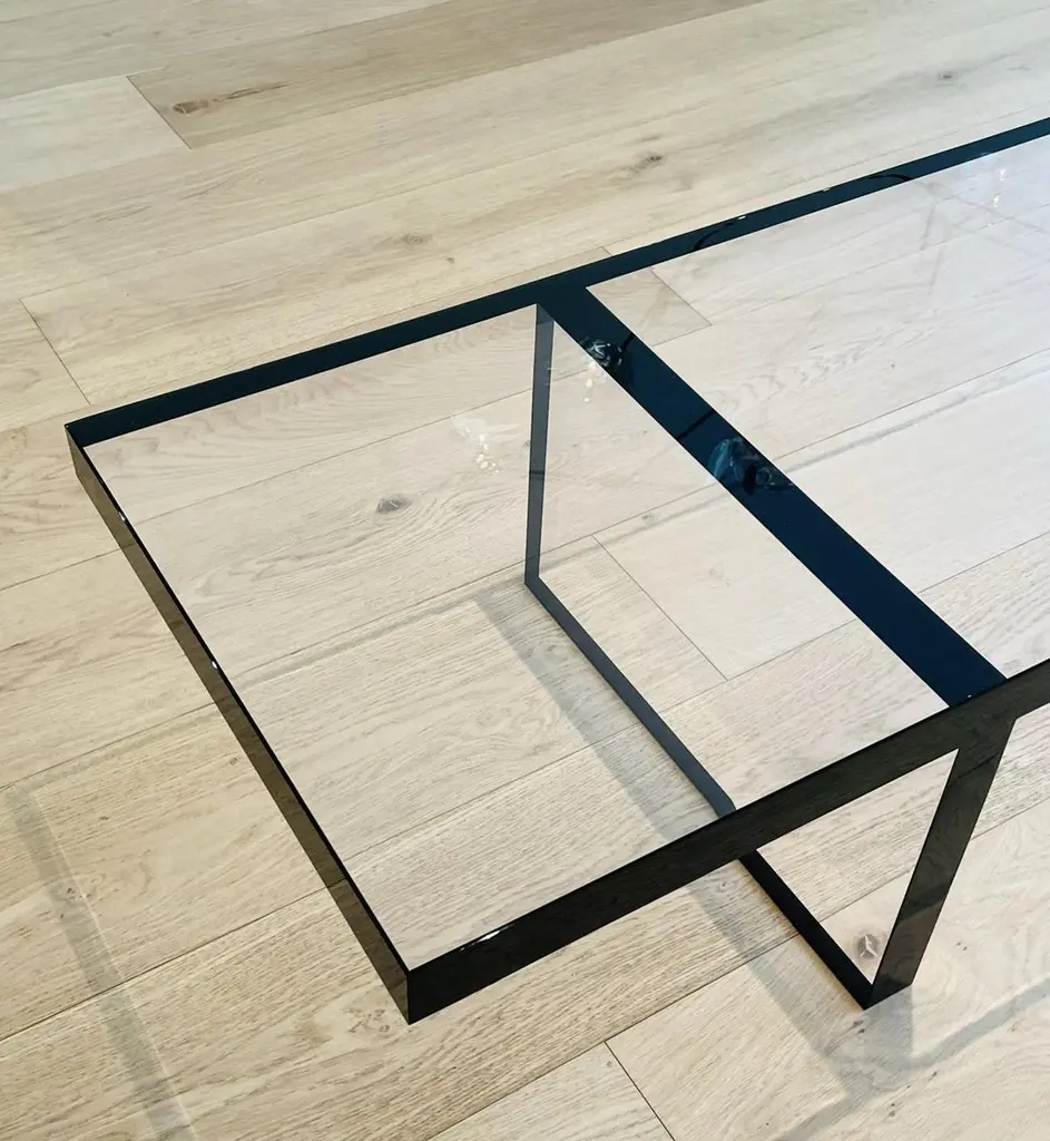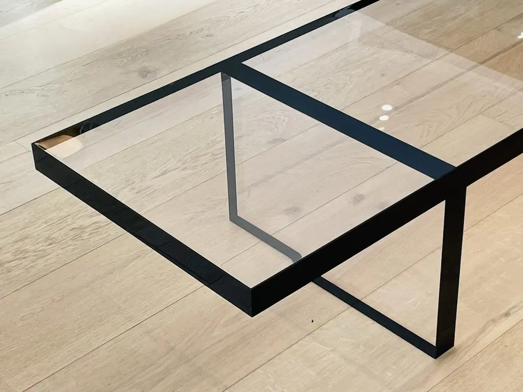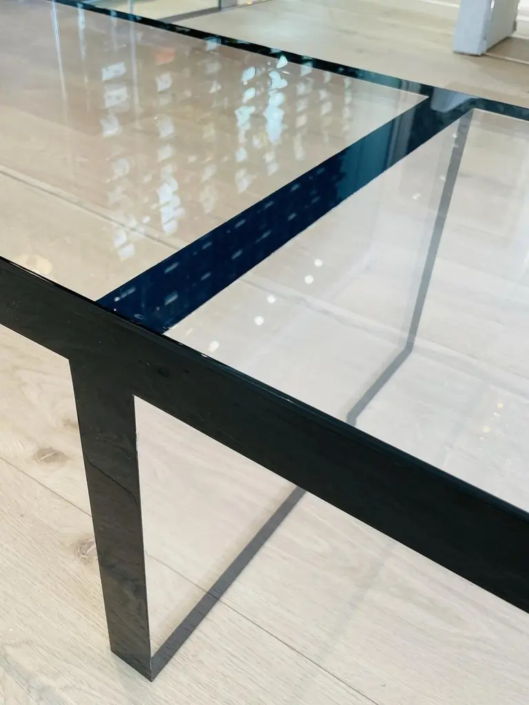 Introducing the Lucite Coffee Table / Bench in Clear & Black Lucite by Amparo Calderon Tapia! This stunning piece of furniture is a perfect blend of practicality and sophistication. Crafted from premium quality clear and black Lucite, this coffee table / bench will instantly elevate the aesthetic appeal of any living space.The bench/coffee table is hand crafted by skilled artisans in Los Angeles California, this bench is not only stylish but also built to last. Featuring a unique design with a 2 inch thick laminated Lucite, this coffee table / bench is both stylish and functional. the clear Lucite top allows you to showcase your favorite decorative items or coffee table books and when used as a bench it can easily accommodate up to 4 people comfortably.The Lucite Coffee Table / Bench in Clear & Black Lucite by Amparo Calderon Tapia is perfect for use as a coffee table or bench, making it a versatile addition to any living space. Whether you're hosting a party or simply relaxing with your family, this coffee table / bench is sure to become the centerpiece of your living room.So, if you are looking for a stylish and functional coffee table / bench that will add a touch of elegance to your living space, look no further.The piece can be customized to any size and we have many colors to choose from, contact us directly if you wish to order a custom piece.Lead time for this piece is 4-6 weeks.Measurements:84 inches wide x 21 inches deep x 15 inches high.Condition:Newly made.Disclaimer;Due to the nature of the material used to manufacture this bench, there will be some imperfections, specially around or under the lamination, this includes and is not limited to small air bubbles, glue residue, hairline scratches that happen during polishing and sizes may vary by 1/8" to 1/4".Lead time for other colors and sizes is 4-6 weeks.