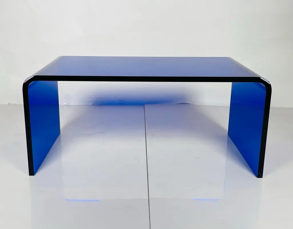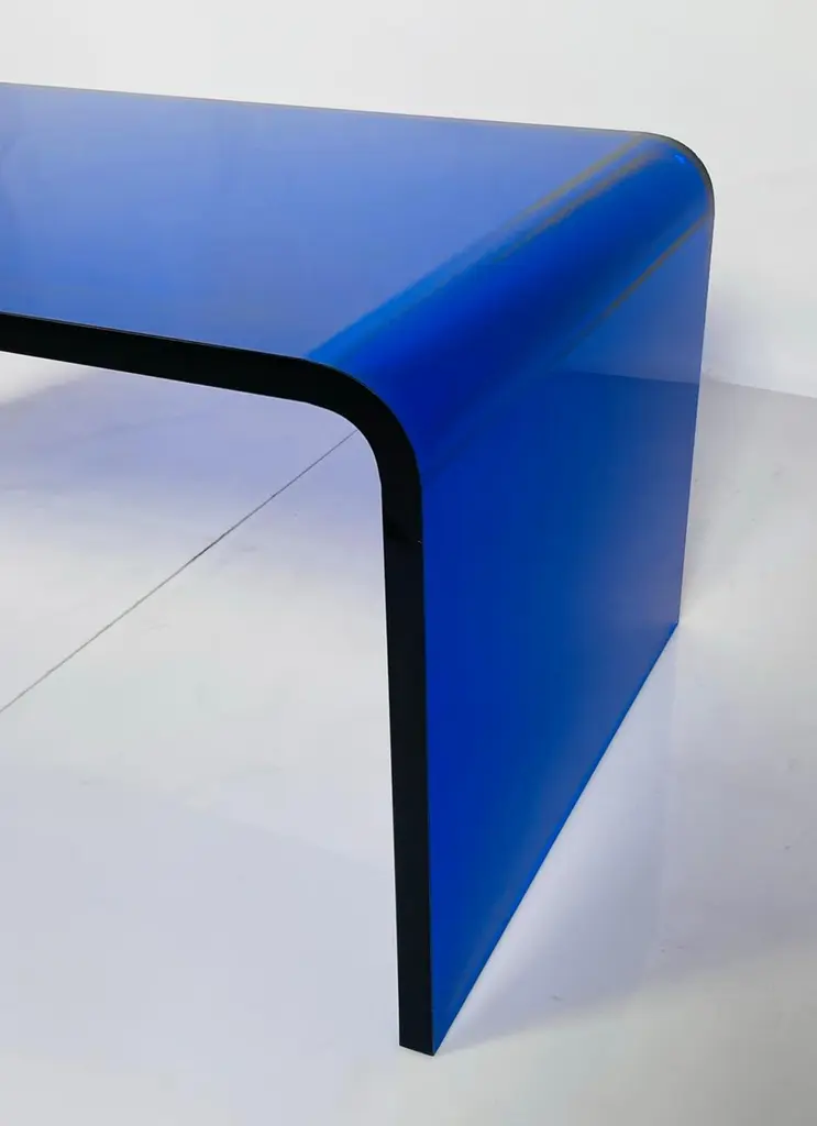 Introducing the stunning Lucite Coffee Table in Cobalt Blue by Cain Modern, USA 2023. This exquisite piece of furniture will add a touch of elegance and sophistication to your living space. Crafted from high-quality Lucite material, this coffee table is durable and long-lasting.Featuring a sleek and modern design, this coffee table is sure to become the centerpiece of any room. The cobalt blue finish adds a pop of color and makes a bold statement. This coffee table is perfect for serving coffee, tea, or snacks to your guests. It can also be used to display decorative items such as flowers, books, or magazines. With its versatile design and durable construction, this coffee table is an ideal addition to any home.Designed by the Cain Modern Studio and hand crafted by our skilled artisans in Los Angeles, California The Lucite Coffee Table in Cobalt Blue is a testament to their commitment to excellence and attention to detail. It is a must-have for anyone who values style, quality, and functionality in their furniture.The table is made to order and at the moment we offer the following colors:Olive green, green, cobalt blue, Rubi red, turquoise, fuchsia.Lead time is 4-6 week.Measurements as shown:48 inches wide x 24 inches deep x 18 inches high.Disclaimer:Due to the nature of the material used to manufacture this bench, there will be some imperfections, specially around or under the lamination, this includes and is not limited to small air bubbles, glue residue, hairline scratches that happen during polishing and sizes may vary by 1/8" to 1/4" or more.Lead time for other colors and sizes is 4-6 weeks.