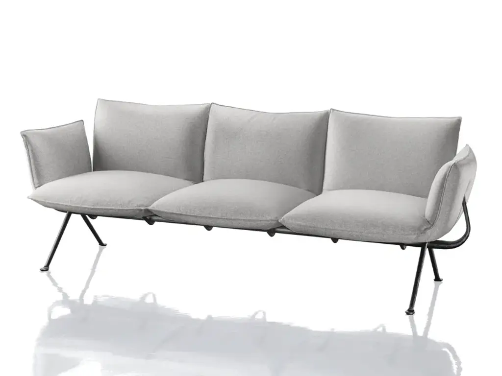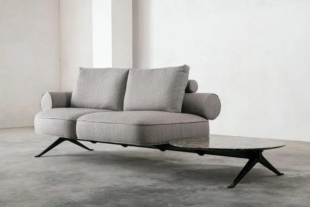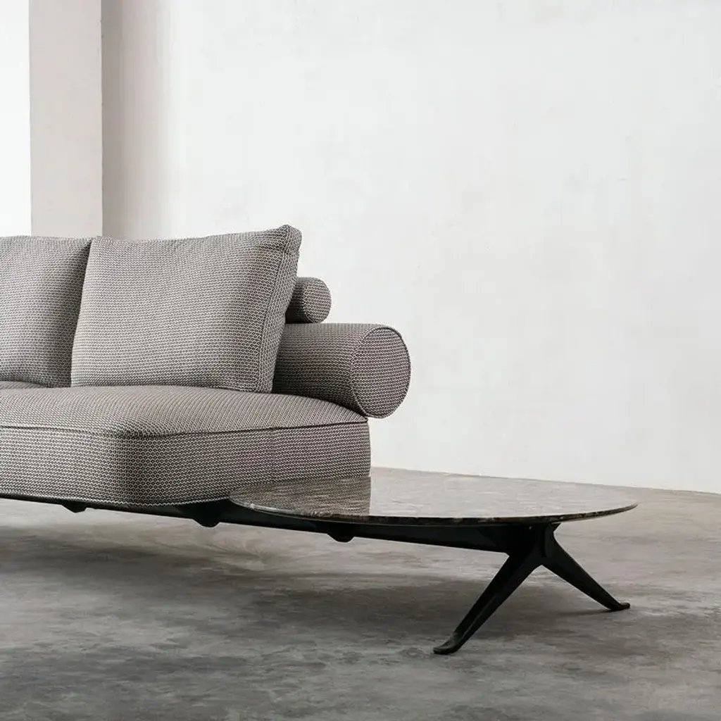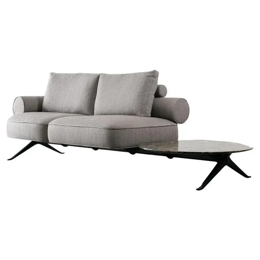 Luizet canapé with marble table by luca nichetto sofa 2 seats and 1 top in marble dimensions: w 249 x d 89 x h 82 cm materials: black powder coated aluminium and metal structure, cast aluminium legs, emperador silver dark, fabric or leather as in a game that frees the imagination and possibilities, luizet is a modular sofa system that invites to combine together various elements by a distinctive geometry. An arched angular piece, a central square and a circular one, available both as a table and as a pouf, are the foundation for a variety of settings. Supported by a discrete and elegant metal frame, the three modules can be juxtaposed and mixed with the addition of cylindrical and rectangular cushions for the backrest. This piece is attributed to the mentioned designer/maker. It has no attribution mark and no official proof of authenticity, however it is well documented in design history. I take full responsibility for any authenticity issues arising from misattribution