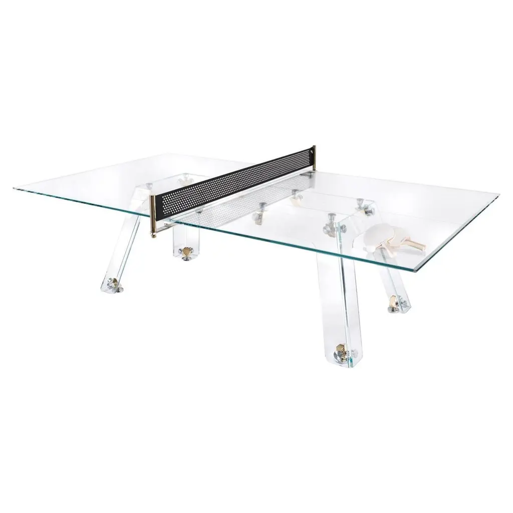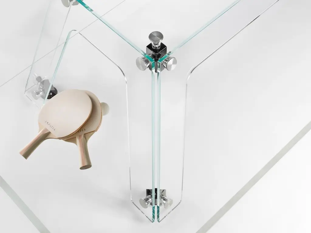 About Impatia:At Impatia each creation is a tale of excellence, driven by the core value of empathy. The human-to-human approach creates a journey of exploration, which is highlighted by technical development, high-quality materials and incomparable aesthetic refinement. The development of each product is full of interpretation from the first glance, becoming a representation of a lifestyle and an instantly recognizable identity, that pushes to reinvent the classics.About the Lungolinea collection:The idea of playing on a transparent game table may seem unimaginable, but thanks to careful engineering, it is now possible. Even for the most competitive professional players, a game of table tennis can now be enjoyed on a table made of complete glass.Price does not include VAT, shipping, and assembly.Product information:Case in low-iron glass, wooden legsChrome componentsAlcantara netAccessories1 Table tennis net kit 2 Professional rackets4 Professional ballsProduct weight:250 kg / 530 lbsPackaging information:205 x 155 x 44 (H) cm 80” x 61” x 17” (H)380 kg / 840 lbs.