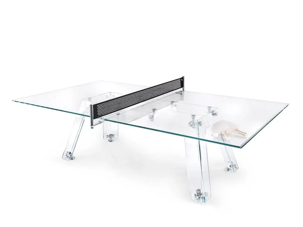 About Impatia:At Impatia each creation is a tale of excellence, driven by the core value of empathy. The human-to-human approach creates a journey of exploration, which is highlighted by technical development, high-quality materials and incomparable aesthetic refinement. The development of each product is full of interpretation from the first glance, becoming a representation of a lifestyle and an instantly recognizable identity, that pushes to reinvent the classics.About the Lungolinea collection:The idea of playing on a transparent game table may seem unimaginable, but thanks to careful engineering, it is now possible. Even for the most com- petitive professional players, a game of table tennis can now be enjoyed on a table made of complete glass.Price does not include VAT, shipping, and assembly.Product information:Case in low-iron glass, wooden legsChrome componentsAlcantara netAccessories1 Table tennis net kit 2 Professional rackets4 Professional ballsProduct weight:250 kg / 530 lbsPackaging information:205 x 155 x 44 (H) cm 80” x 61” x 17” (H)380 kg / 840 lbs.