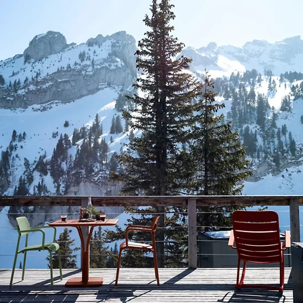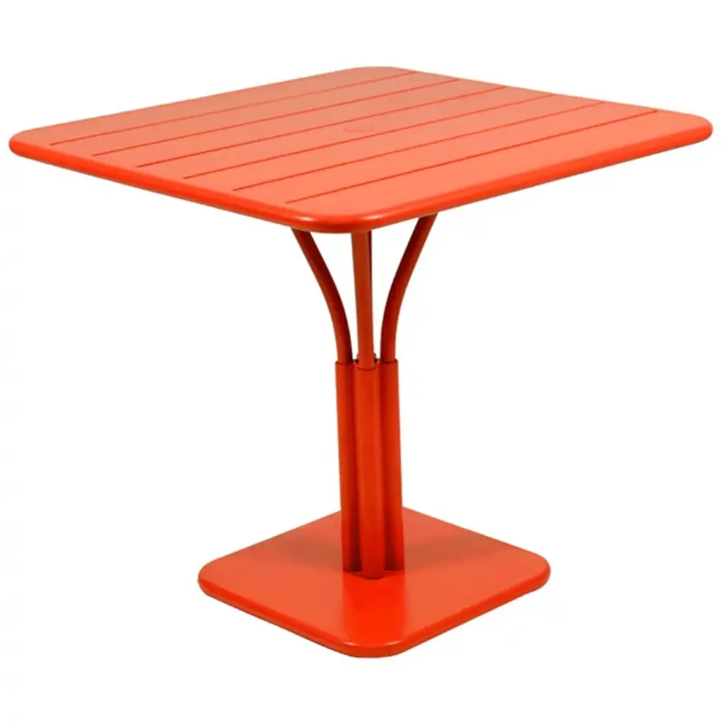 The Fermob Luxembourg Square Table pairs the smooth style of the Luxembourg collection with a distinctive pedestal base. The parasol hole in the center of the aluminum tabletop accommodates a standard patio umbrella or can instead be fitted with the included matching cap. Choose between all Fermob colors, and coordinate with Luxembourg Stacking Chairs or Armchairs.