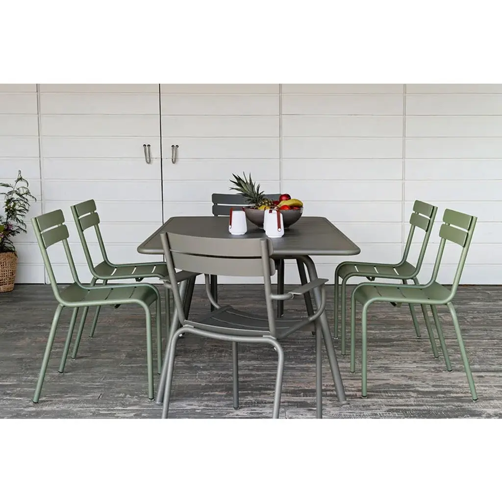 The Luxembourg table by Fermob comfortably seats 6 to 8 persons. The garden table is made of aluminum, a material that is both light and resistant, making the table perfect for outdoor use on the patio, terrace, balcony or garden. Fermob's Luxembourg collection is a true classic that you may have encountered, for example, in the parks of Paris: the garden furniture was originally designed in 1923 for the city's famous Jardin du Luxembourg. In 2004, Fermob asked designer Frédéric Sofia to create a modern interpretation of the legendary outdoor furniture – the result is an elegant and endlessly multifunctional range of patio furniture that carries a name inspired by the furniture's original location. Fermob also still manufactures the original models for the public parks and gardens in Paris.