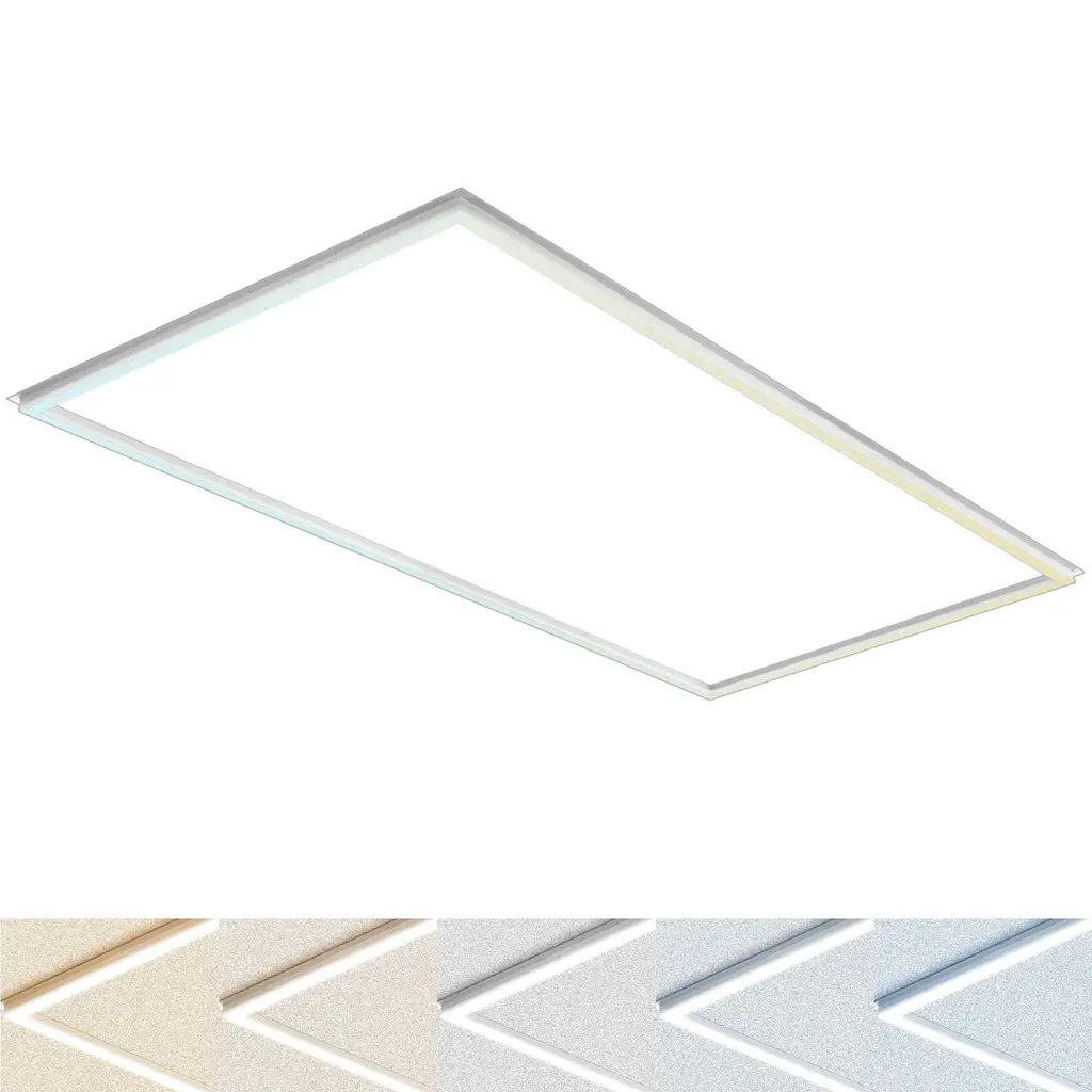 5 COLOR TUNABLE - Enjoy the convenience of an LED light panel that offers selectable white lighting with 5 different color settings to choose from. With the attached 5 cct adjustable switch on the jbox, you can effortlessly transition between 3000K soft white, 3500K natural white, 4000K cool white, 5000K bright white, and 6500K daylight. Tailor the ambiance to your preferences and adjust your lay-in LED panels until you find the perfect light for your space.FLEXIBLE WATTAGE SETTINGS - Enhance your 2x4 LED drop ceiling light fixture with a range of wattage options, including 40 watts, 50 watts, or 60 watts. Transition to a wattage option that will fit your room with just the right amount of light. Selecting 40W yields 5200 lumens, while 50W delivers a radiant 6500 lumens, and 60W provides an impressive 7800 lumens of vibrant lighting. An ideal feature if you prefer not to use a dimmer but still desire precise control over your lighting.MODERN DESIGN - A new style of ceiling lights that offers a clean line and modern edge lighting to your space compared to your standard 2x4 ft LED panel light. Perfect for contemporary spaces in your home, office, ceiling grid, basement, garage, shop, and more. Use with a 0-10V LED dimmer for constant personalized control throughout the day.CONTINUOUS LIGHT - Built with an astounding 50,000 hours of lifetime which means you won't need a replacement for years! Each LED integrated lights use slim frame edge lit lighting which offers a unique appearance while also providing uniform light distribution. With it's thin and eye-catching design, these light panels will complement any modern space.RELIABLE LIGHTING - Each panel LED kit provides quality residential and commercial lighting with the 5 cct color temperature adjustable switch and 3 wattage selectable switch located on the included junction box. Enjoy a 2x4 light fixture with a damp rating for reliability, DLC Premium for efficiency, IC air tight insulation contact safe and ETL Listed, 100V to 277V hardwire capable, and backed by a 5 YEAR WARRANTY.v