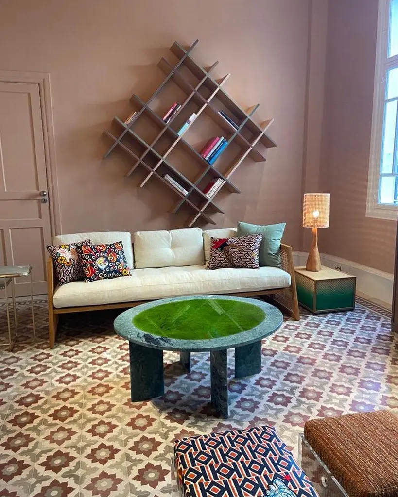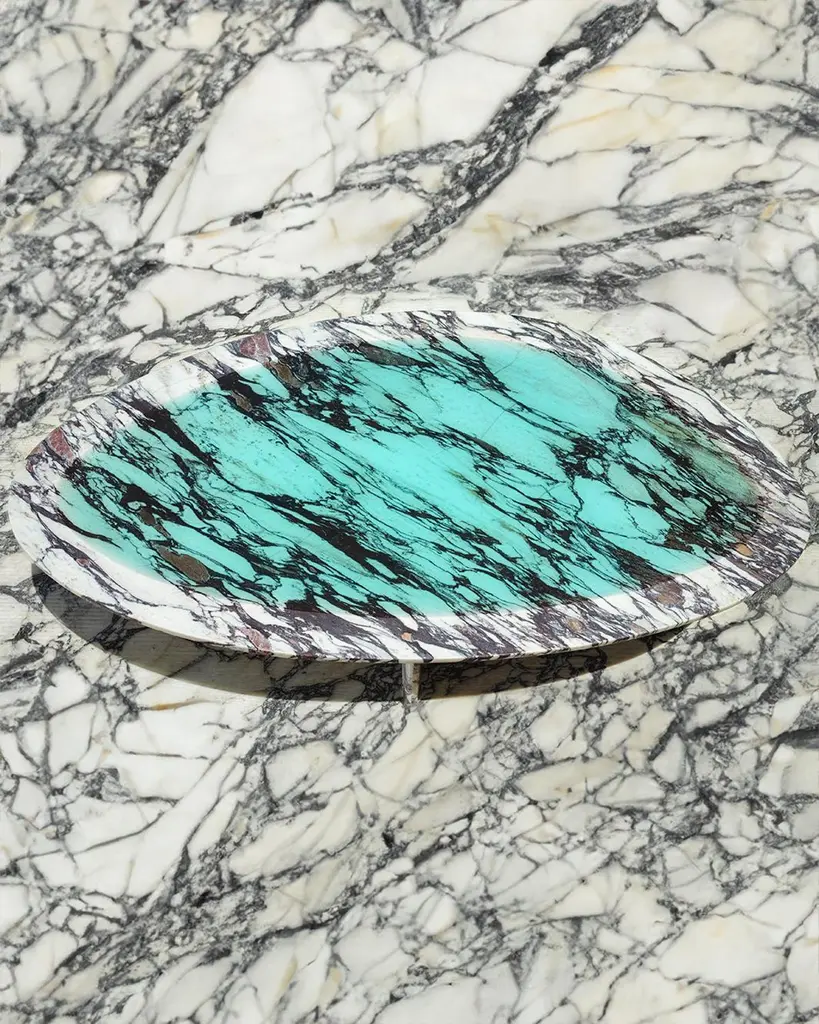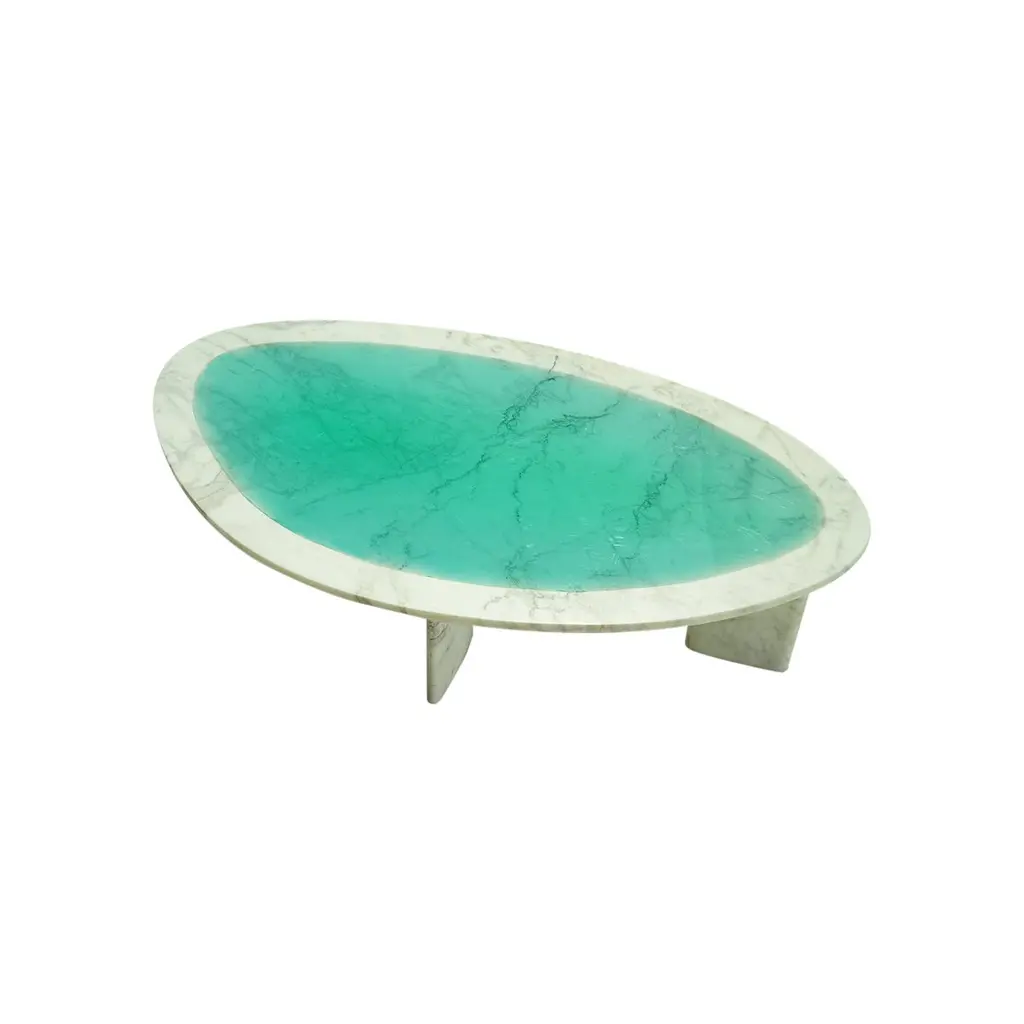 Luxury Handcrafted Natural Marble Turquoise Resin Low Table Minerals, Carla Baz