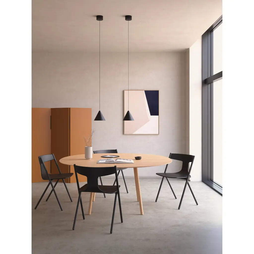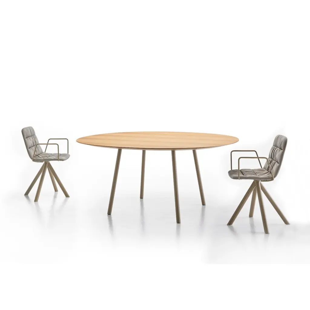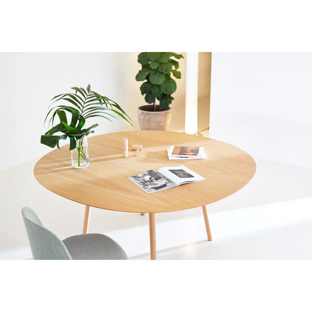 Viccarben’s Maarten chair combines the spirit of contemporary Spanish design with influences from the 1970s. Crafted from matte-coated oak, the Maarten table has sleek, rounded legs and an oval-shaped tabletop adorned by wood grain patterns. The thin tabletop and reduced appearance give the Maarten table an attractive, minimalist character. Designed by Víctor Carrasco for the Spanish company Viccarbe, the Maarten collection consists of a diverse selection of chairs and tables. Their form languages complement each other in style, and their simplistic, timeless appearance is also compatible with the widest range of furniture and home decor styles.