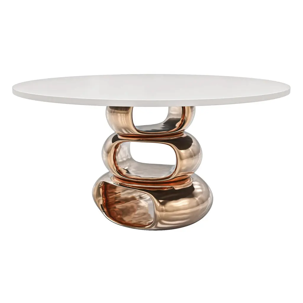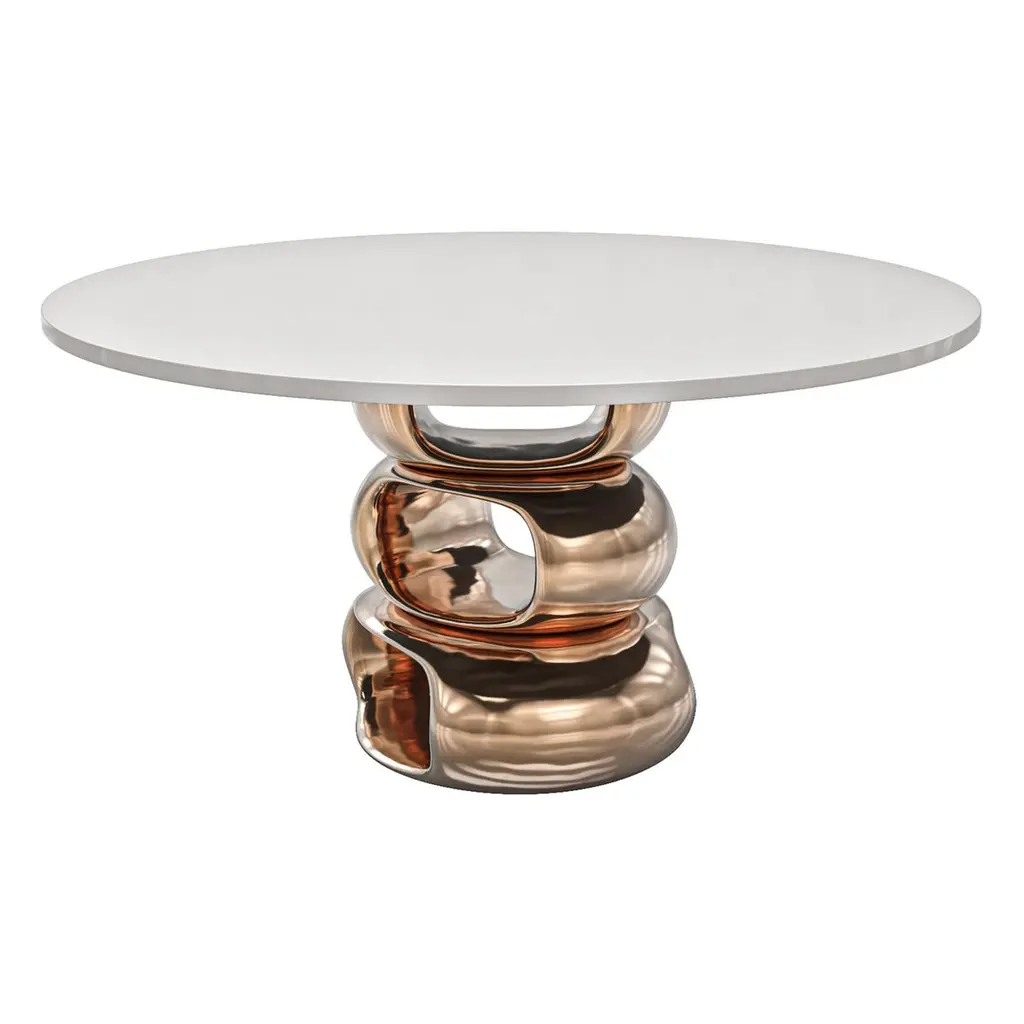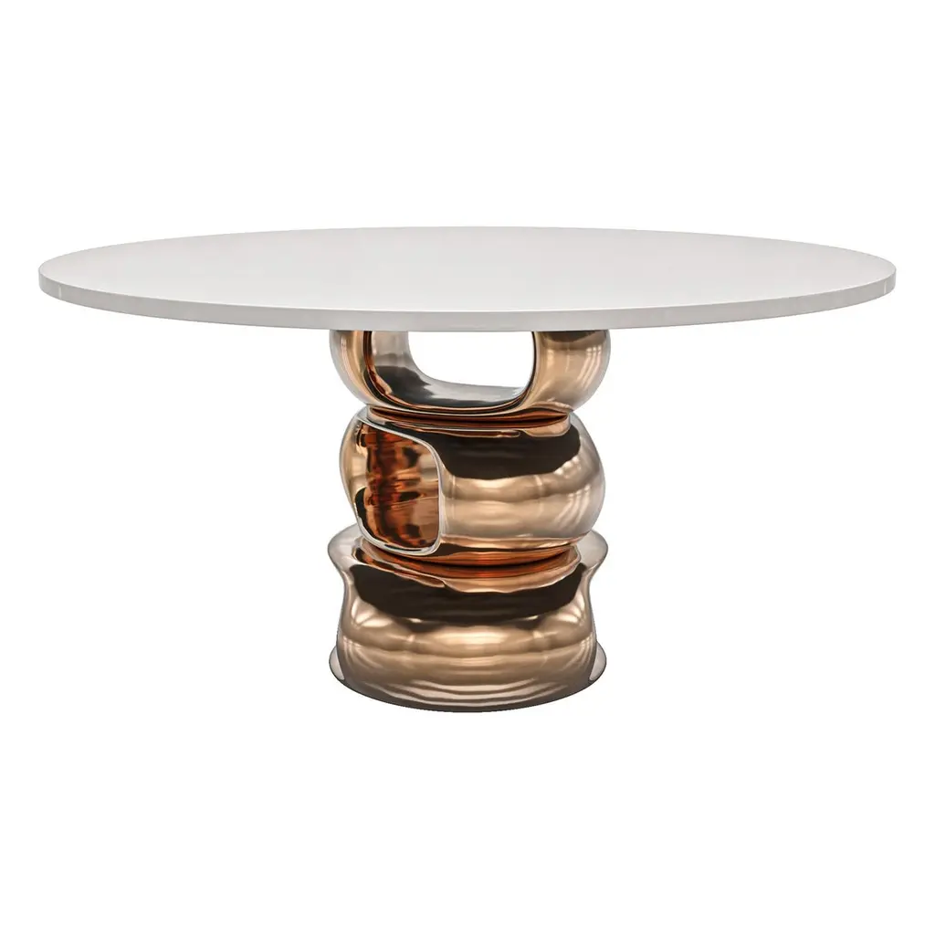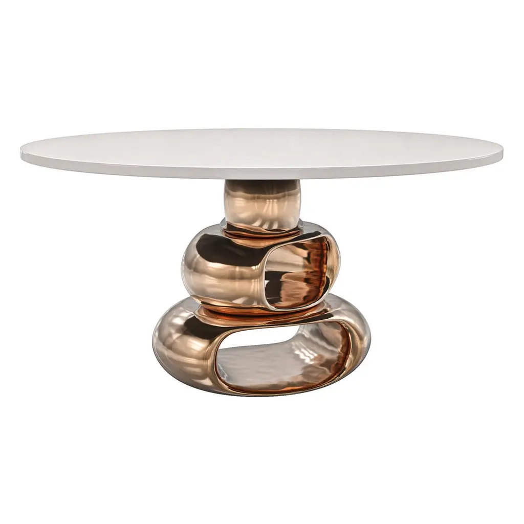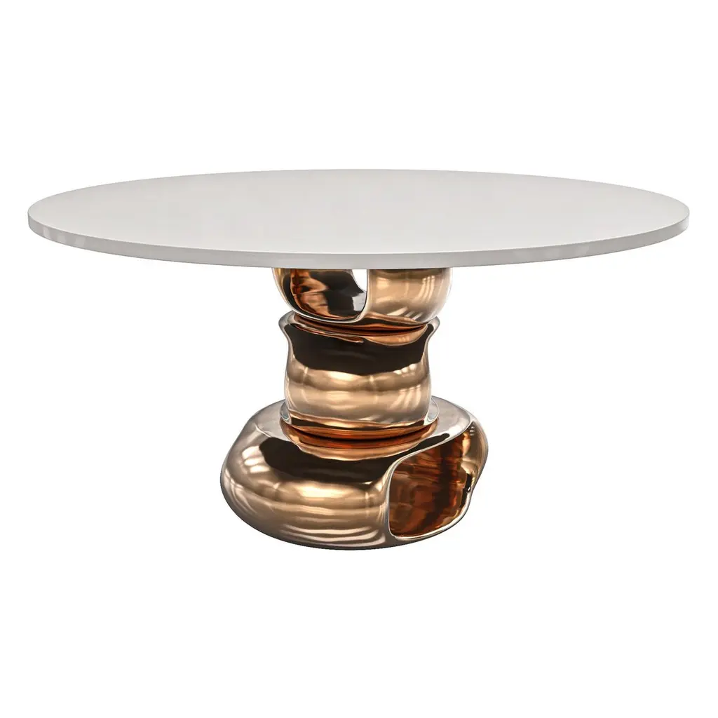 "Magistrale" Round Table With Bronze And Stainless Steel, Handmade, Istanbul