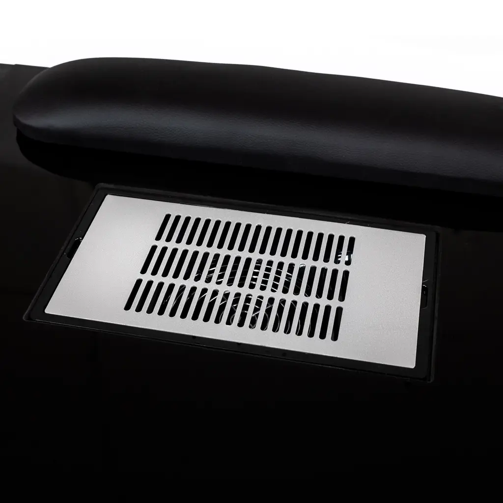 Say goodbye to heavy, cumbersome nail tables that tie you down. Our Glasglow II Manicure Table is designed to be effortlessly portable. With its lightweight construction and easy-to-assemble design, you can take it anywhere your services are needed. Perfect for mobile nail technicians or those seeking flexibility in their salon setup. | ★Full Assembly is required. Table weight 90 lbs | ★Built-in fan, vented for optimal salon use | ★Glass accent in the center size 20" x18" | ★4 Drawers and 1 cabinet for storage, matching armrest included | ★Space under the table for chairs - 17.5" x 25.5"