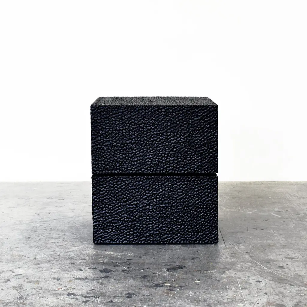 Maple round table #1 sculpted by John Eric ByersDimensions: 20” x 18” x 18 inMaterials: carved lacquered mapleAll works are individually handmade to order.John Eric Byers creates geometrically inspired pieces that are minimal, emotional, and modernly refined.John's individually handmade work is guided by purity in form, surface texture, structure, and respect for use of materials. Heralded as a leading American artist working in wood, permanent collections include the Smithsonian American Art Museum, the Philadelphia Museum of Art and the Museum of Arts and Design in NYC. Numerous awards include a Louis Comfort Tiffany Foundation Award, New York Foundation of the Arts Awards, and inclusion in the Smithsonian's Oral Archives of American Arts.
