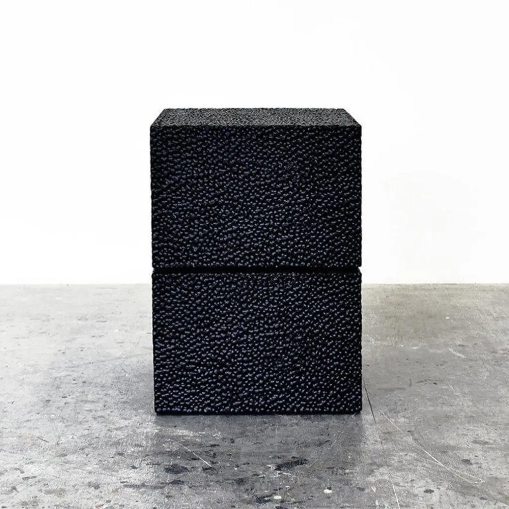 Maple round table #2 sculpted by John Eric ByersDimensions: 20” x 15” x 15 inMaterials: Carved lacquered mapleAll works are individually handmade to order.John Eric Byers creates geometrically inspired pieces that are minimal, emotional, and modernly refined.John's individually handmade work is guided by purity in form, surface texture, structure, and respect for use of materials. Heralded as a leading American artist working in wood, permanent collections include the Smithsonian American Art Museum, the Philadelphia Museum of Art and the Museum of Arts and Design in NYC. Numerous awards include a Louis Comfort Tiffany Foundation Award, New York Foundation of the Arts Awards, and inclusion in the Smithsonian's Oral Archives of American Arts.