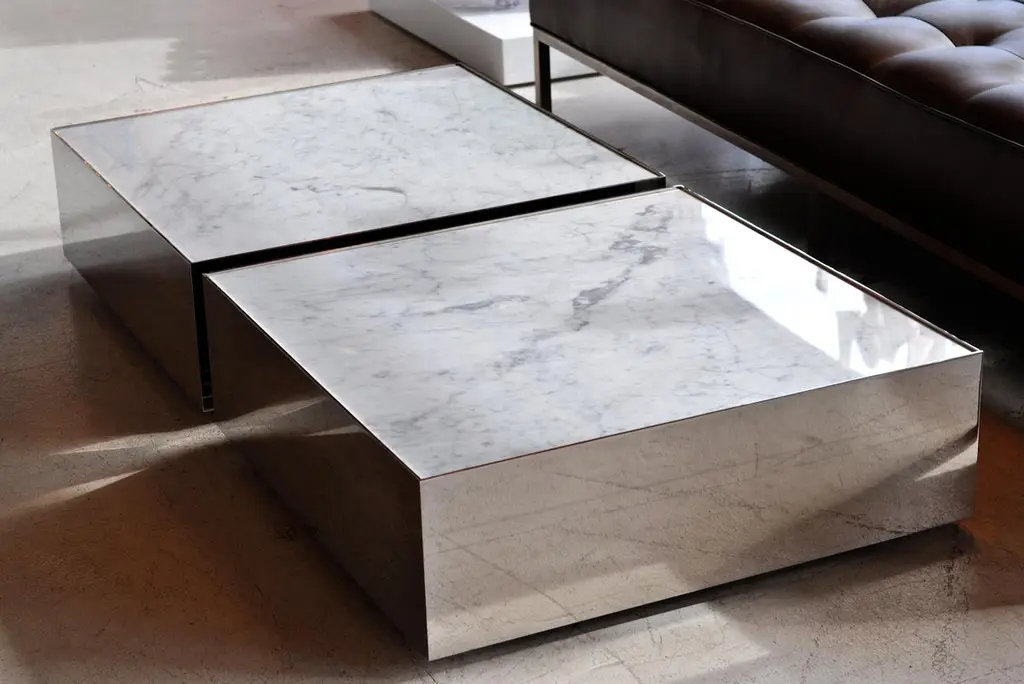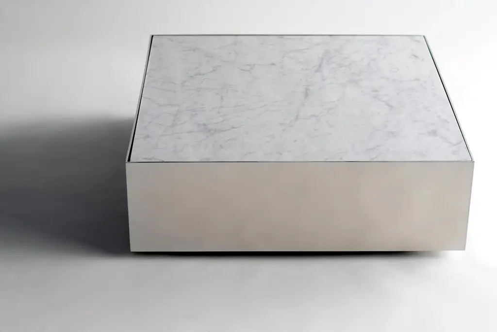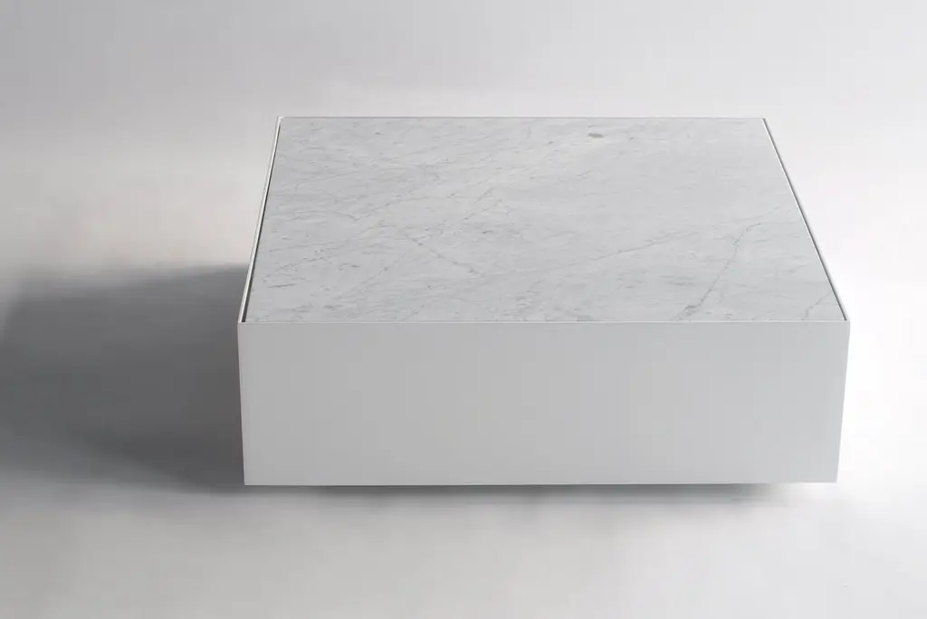 Marble Ballot Coffee Table by Phase DesignDimensions: D 76,2 x W 76,2 x H 25,4 cm.Materials: White marble and white powder-coated steel.Steel coffee table with white carrara or negro marquina marble top. Available in polished chrome or powder coat finish. Marble available with polished or honed finish. Prices may vary. Please contact us.The marble ballot box invokes the spirit of minimalist artist Donald Judd. Crisp lines unify to create a steel box with a sleek sunken white carrara marble top. The table is constructed out of steel and finished with chrome plating or powder coating.Autodidact award-winning designer Reza Feiz has always been drawn to the strength in simplicity. Lured to Southern California by its inventive, creative spirit, he quickly discovered his true calling among the vast community of creators and artisans whose skills and ingenuity expertly transform imagination into reality.Inspired by Los Angeles’ iconic landscape and the compelling beauty of the places and spaces he encountered, he envisioned furniture, lighting and tabletop accessories, fabricating them from contemporary materials with the help of a tightly knit coterie of craftspeople.The resulting restrained yet revolutionary pieces have garnered enthusiasm from an international audience.He’s been lauded as “An American designer who influences world design”, a “Style Pioneer” and “One of a group of select young designers who represent the leading edge of discovery in design.” Architectural Digest’s Mayer Rus noted that his “wide-ranging collections make a strong case for the enduring appeal of restrained modern design.” Surface Magazine raved that he “imbues his work with a 21st-century edge. His astute sense of restraint keeps the designs relevant in a constantly evolving industry, without needing to subscribe to trends.”“Reza Feiz imbues his work with a 21st-century edge. His astute sense of restraint keeps the designs relevant in a constantly evolving industry, without needing to subscribe to trends.”