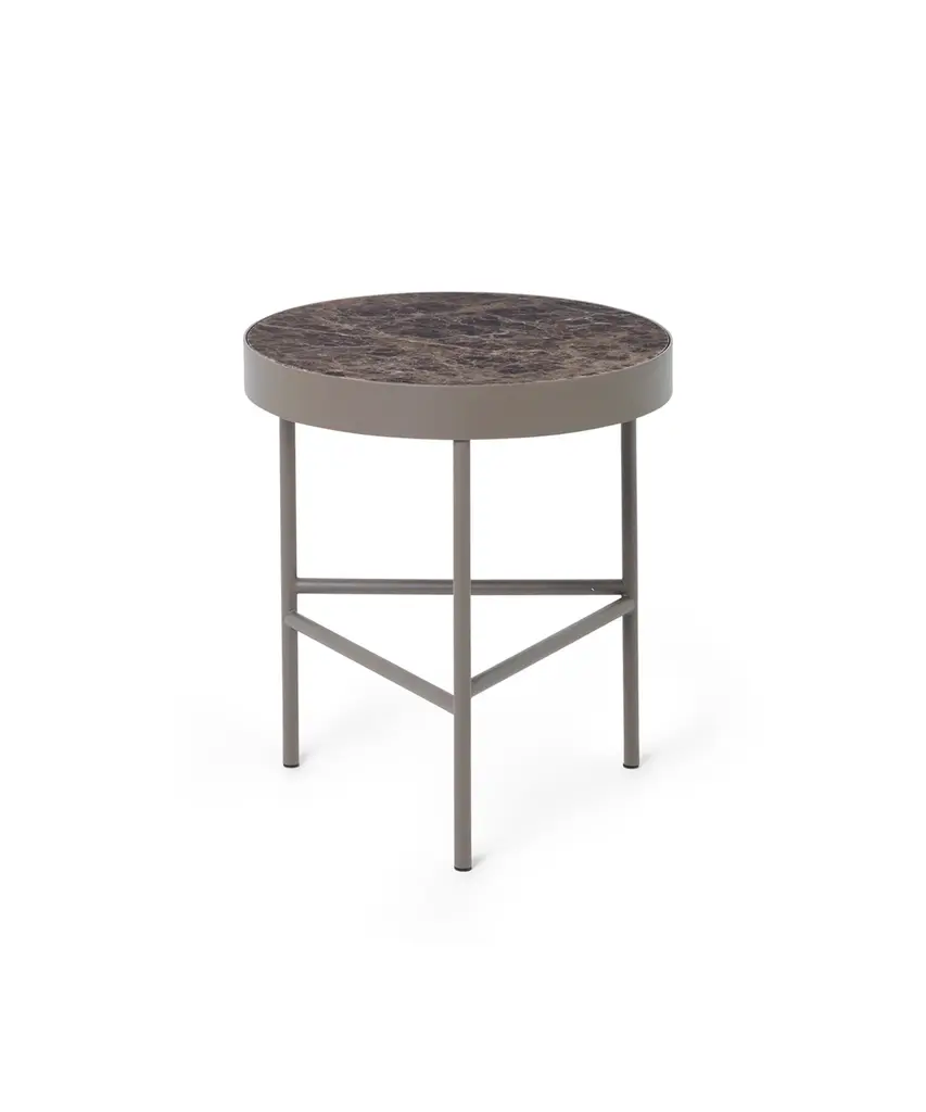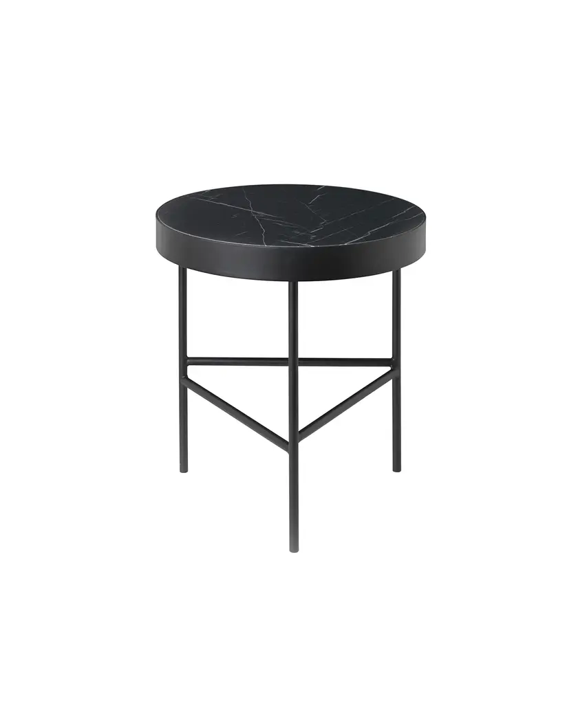 Bring this beautiful marble table home with you and place it in your favorite spot next to your bed, in front of your sofa, next to your favourite chair, or simply put it in a corner with all your favourite objects on top. It will look beautiful everywhere. The table has a solid marble top and a powder coated metal frame. Designed and produced by the Copenhagen-based studio Ferm Living.
