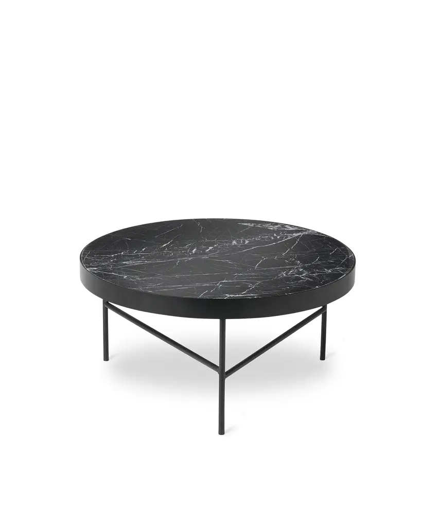 Bring this beautiful marble table home with you and place it in your favorite spot next to your bed, in front of your sofa, next to your favourite chair, or simply put it in a corner with all your favourite objects on top. It will look beautiful everywhere. The table has a solid marble top and a powder coated metal frame. Designed and produced by the Copenhagen-based studio Ferm Living.