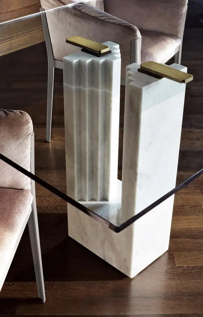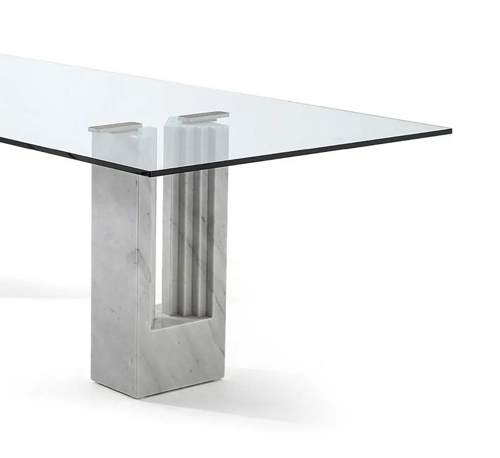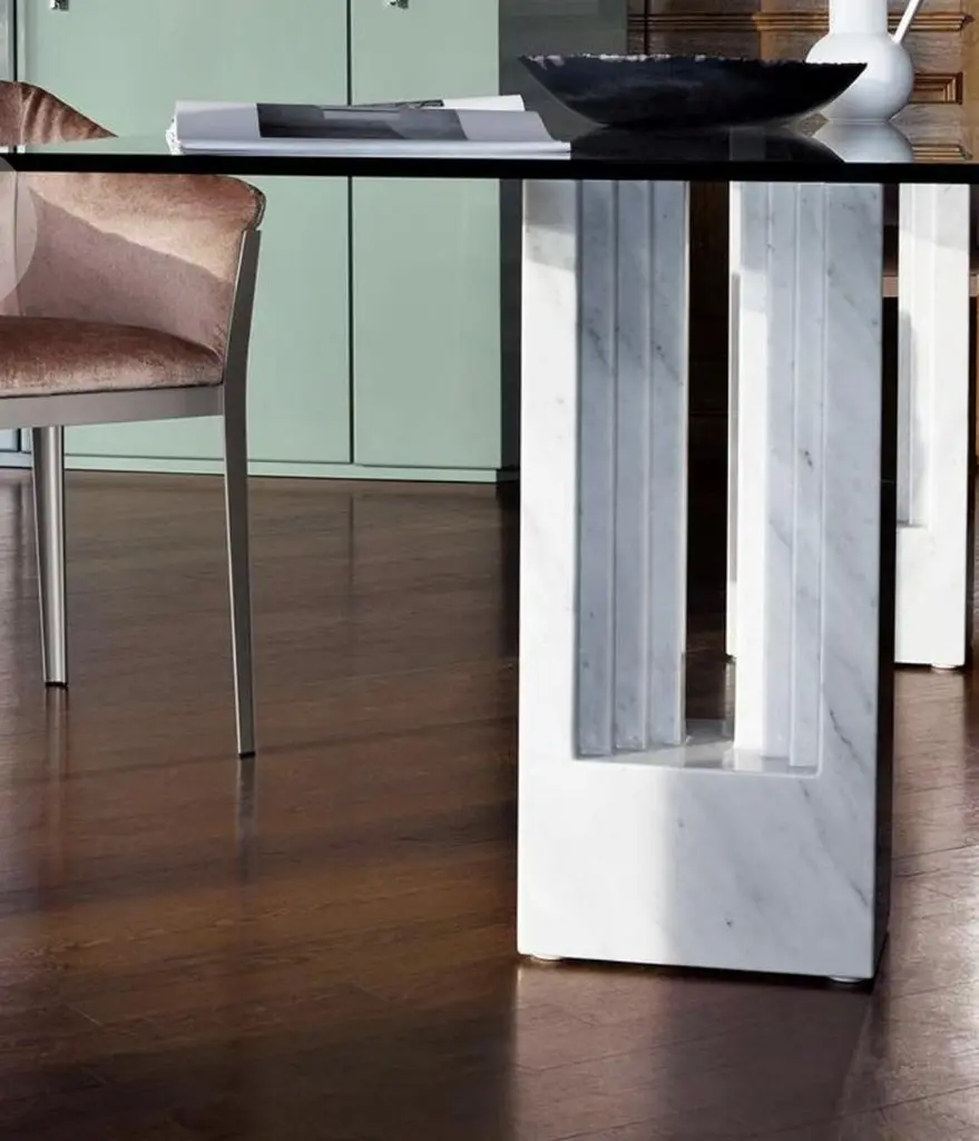 Marcel Breuer and Carlo Scarpa Delfi Table For CassinaThe design table with rectangular top reflects the re-design of a Rationalist model created by Marcel Breuer in the 1930s.Delfi is a sculptural piece designed by Carlo Scarpa with a philosophical and constructive approach especially attentive to detail, workmanship and the choice of materials.TOPFloat glass or marble.FEETMonolithic carved marble legs.Delfi forms part of the Ultrarazionale collection, which was launched in 1968, and is composed of sculptural pieces designed by Carlo Scarpa, typified by his signature attention to detail and choice of materials. This table is a re- design of a Rationalist model created by Marcel Breuer in the 1930s for Dino Gavina’s residence in Bologna. At the end of the 1960s, Scarpa began to re- examine the original concept, effecting some variations, in agreement with the designer. In 2009, Tobia Scarpa, Carlo Scarpa’s son, suggested yet another variation: this time, a glass table-top so as to highlight the elegant brass supports and the fluting on the marble bases, the better to see the formal elegance of the piece.Important information regarding images of products:Please note that some of the images show other colors and variations of the model, these images are only to present interior design proposals. The item that is selling is on the first image.Important information regarding color(s) of products:Actual colors may vary. This is due to the fact that every computer monitor, laptop, tablet and phone screen has a different capability to display colors and that everyone sees these colors differently. We try to edit our photos to show all of our products as life-like as possible, but please understand the actual color may vary slightly from your monitorAbout The Designer:This German designer and architect who was originally from Hungary, enrolled at the Bauhaus School when he was just 18. Four years later he had become one of its main teachers. In charge of its furniture section, Breuer encouraged students to look at how furniture and furnishing could be industrially manufactured, tackling the relative technological and stylistic problems with a through and methodological approach. Meeting with Marcel Breuer was one of the most important moments in Gavina's life.About The Manufacturer: Established in 1927 by Cesare and Umberto Cassina in Meda, Italy, Cassina launched industrial design in Italy in the 1950s, based on a totally innovative approach that marked the transition from artisan production to mass production. With a mindset focused on research and innovation, Cassina combines technology and long-standing artisan craftsmanship. Memory, research, innovation. Cassina blends traditional skills and superior productivity, meticulous attention to detail and passion, uniqueness and experimentation, wellbeing and sustainability. Today, the company continues to address new lifestyles with the creation of complete, harmonious interior decor solutions that embody the best contemporary design for all areas of the home.