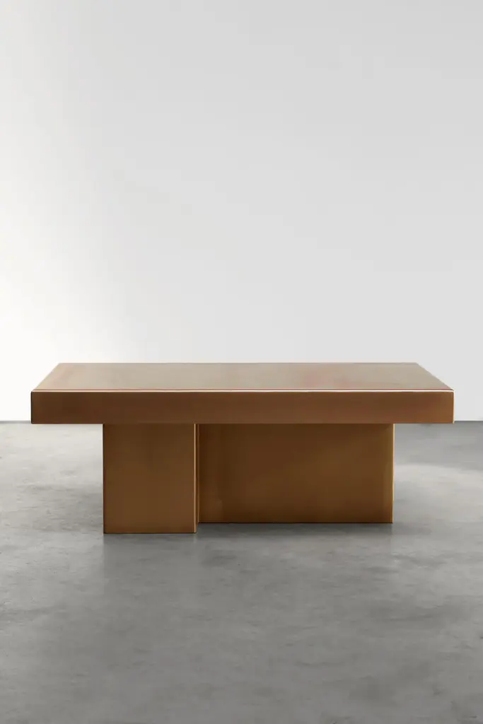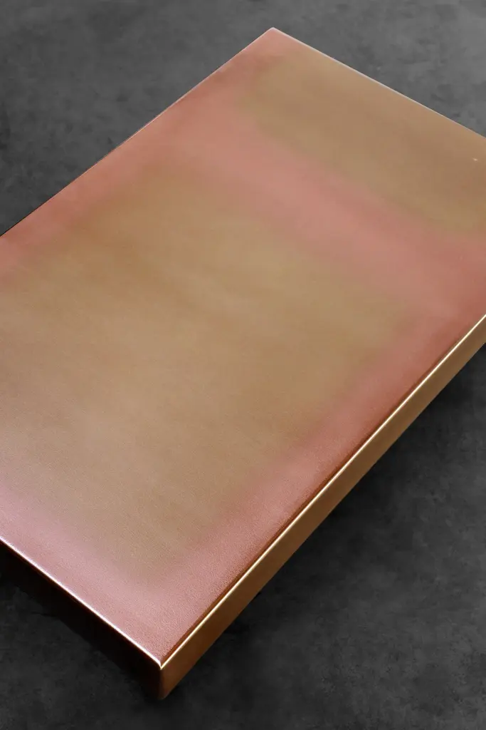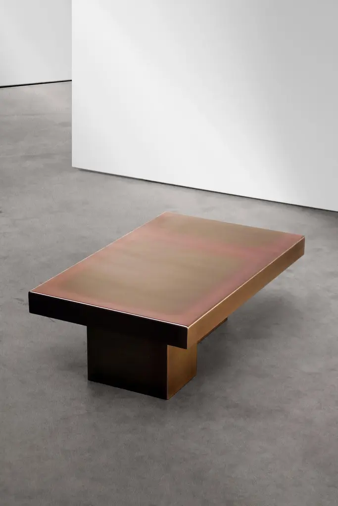 Marcin Rusak Studio’s Merging Metals collection focuses on showcasing the painterly qualities of merging metals, with the aim to instil artistic expression into the industrial processes associated with this material. The collection adopts a metal spraying technique traditionally used for large-scale industrial manufacture, and renders the process handmade, resulting in individually unique pieces. By applying metals such as bronze, brass, copper, zinc and aluminium to objects as if they were three-dimensional canvases, a truly original aesthetic landscape is created; one of deep colours and rich textures reminiscent of Minimalist sculpture and colour-field painting.Handmade in Europe, the MM Table 100-2 is made in steel and then metallised in aluminium bronze and phosphor bronze. The piece is fully customisable in terms of dimensions and finishes.The piece will be shipped in a museum-quality wooden fumigated crate suitable for airfreight. The price includes packing and crating, excludes shipping costs, import duties and taxes, if applicable.