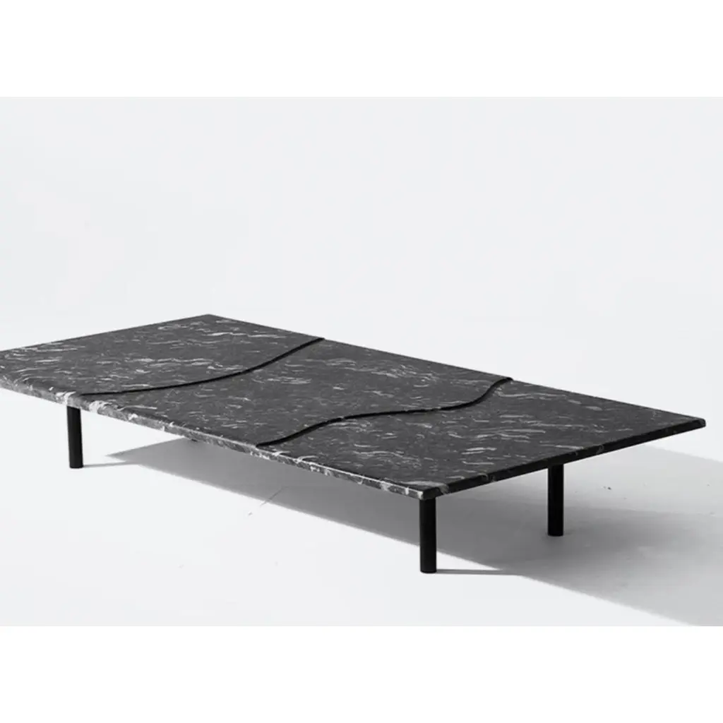 Maré Coffee Table by WentzDimensions: D 80 x W 160 x H 25 cmMaterials: Granite, Steel.Also available in Black Brazilian Granite, White Brazilian Quartzite.The Mesa Centro Maré portrays a phenomenon of water transition. The table top is divided into three parts – and heights – simulating the arrival or retreat of waves. The black base generates the notion of depth, where matter is dense, complex and mysterious, like a night ocean. The white spots, in contrast, resemble the breaking foam, the becoming of the wave: stirred water, clarity and friction. The choice for a long, rectangular base contrasts with the wave shapes, which give life to the table's layers. The furniture becomes a landscape for the room, or better yet: landscape photography.WENTZSILENT AND NATURAL LIVING DESIGNED IN BRAZILBrazilian brand of furniture, lighting and accessories design.We live in silence, contemplating the environments, through pieces that welcome well-being. We seek to give naturalness to living, with harmonic and sensorial simplicities. We express Brazilian uniqueness through our lines, highlighting local materials and technologies.With a contemporary tropical aesthetic, designer Guilherme Wentz's creations reflect the contemplative personality of their creator, connected to nature and obsessed with design. His designs present a new look at living, where each piece conveys a perfect balance between simplicity and functionality.1987 — Guilherme Wentz is born on July 17, in the city of Caxias do Sul, in Rio Grande do Sul, where he spent his entire youth.2008 — Guilherme drops out of the Business Administration course to start a new creative life studying Product Design.2010 — Begins his career as a designer at the Riva objects brand, where he works for two years.2012 — Recently graduated, receives the IDEA Brasil award for his first product on the market, the Officer desk, developed for the São Paulo brand Decameron.2013 — Receives the iF Design Award for his second signed project, the K for Riva Collection, sets up his studio and starts designing for different brands of furniture, lamps and objects.2014 — Moves the studio to São Paulo, takes on the Style Directorship of the Decameron and Carbono brands and is invited to a project commissioned by the São Paulo Museum of Modern Art.2016 — Joins businessman Rafael Gehrke to launch his first independent collection, called "Capítulo 1", which in its first year was already available in some of the main designer stores in Brazil and the United States. In the same year he was named "Rising Talent" by Maison & Objet Americas and received the Museu da Casa Brasileira and iF Design Awards, both for Luminária UM, developed for Lumini.2017 — Named "Rising Talent" at the Casa Vogue Awards. One of his projects, the Post-Tropical Vase , is acquired for the permanent collection of the Lisbon Design and Fashion Museum.2018 — Wentz is named by the New York Times T Magazine as one of the "6 Rising Studios of the Americas."2019 — The WENTZ brand is established for the production and distribution of independent collections and the launch takes place during New York Design Week. In August, the brand's first store opens in São Paulo.