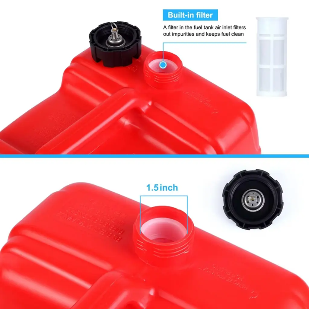 1.Durable Construction for Marine Environments This 3-gallon (12L) portable marine tank is built with high-strength, corrosion-resistant materials¡ªengineered to withstand the harsh conditions of marine use. It resists aging, impact, and deformation, even when exposed to saltwater, UV rays, or extreme temperatures. Whether stored on a boat deck or in a garage, it maintains structural integrity, ensuring reliable long-term performance for all your outdoor power equipment needs. 2.Built-In Fuel Gauge & Filter for Optimal Performance Stay in control with a clear, easy-to-read fuel level indicator that lets you check gas levels at a glance¡ªno more guessing when it¡¯s time to refuel. The integrated marine fuel filter works to trap dirt, debris, and water, keeping gasoline clean and preventing clogs in your outboard motor, generator, or boat engine. This dual feature ensures smooth, stable operation and extends the life of your equipment. 3.Ergonomic Portability for On-the-Go Use Designed with an ergonomic I-shaped handle, this tank is easy to carry and transport, even when full. Its compact size (3 gallons) makes it ideal for small boats, fishing dinghies, inflatables, and portable generators¡ªperfect for weekend trips or emergency fuel backup. The lightweight design won¡¯t weigh you down, while the sturdy handle ensures a secure grip during transit. 4.Dual Sealing & Vented Cap for Leak-Proof Safety Equipped with an adjustable vented fuel cap, this tank balances safety and convenience. The vent allows controlled pressure release to prevent buildup, while the dual-sealing design creates a tight, leak-proof seal during storage and transport. Say goodbye to messy spills or fumes¡ªwhether you¡¯re moving it across the dock or storing it in your vehicle, your fuel stays contained. 5.Complete Fuel Line Kit for Hassle-Free Use Comes ready to use with a premium 9.8ft fuel hose and a squeeze primer bulb, making refueling quick and effortless. The flexible hose reaches easily from the tank to your outboard motor, generator, or other equipment, while the primer bulb helps prime the fuel system for smooth startups. This all-in-one kit eliminates the need for extra parts, providing a reliable, portable fuel solution for all your marine and outdoor power needs.