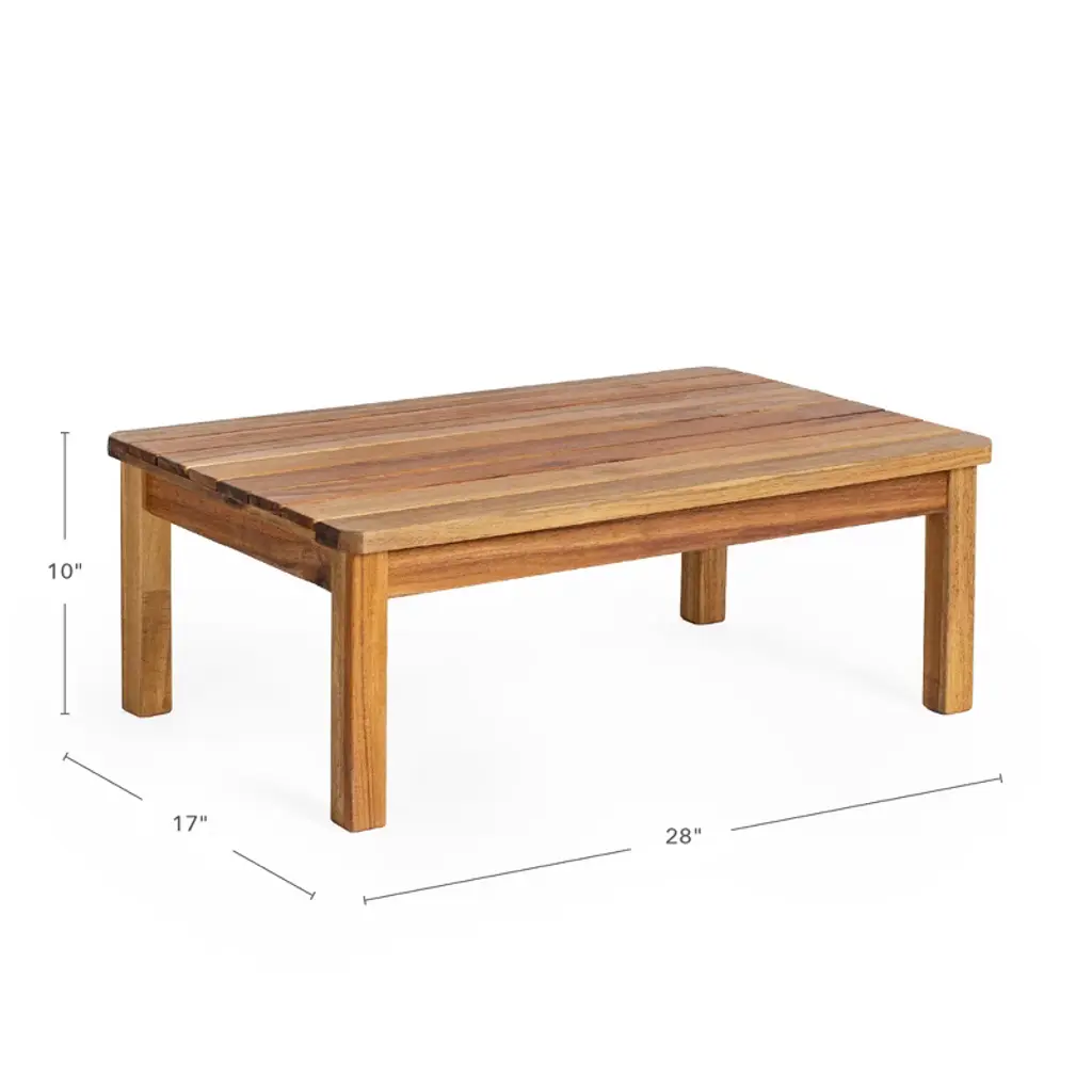 Crafted to support nature-based play and outdoor discovery, the Martha Stewart Kids Outdoor Low Table invites children to engage with the world around them by providing a dedicated space for outdoor activities. Whether they are creating art, reading, enjoying a meal, or simply spending time outside, this versatile surface encourages meaningful moments in nature. Built from naturally weather-resistant acacia wood, made to withstand years of use through sun, rain, and messy play while blending beautifully into natural surroundings. Its low, accessible design makes it easy for children to gather, create, and explore comfortably. Coordinating perfectly with other pieces from the Martha Stewart outdoor collection, it helps you create a refined outdoor setting that feels both playful and peaceful. Measures 10"" H x 30"" L x 17"" W.