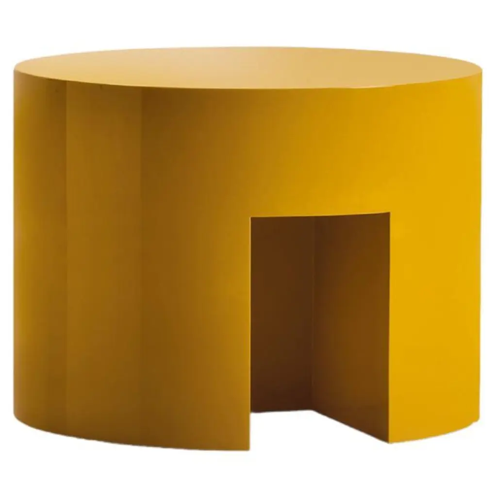 A set of small tables characterized by a peculiar shaded lacquer and a simple gesture that by cutting cylindrical volumes creates the object by subtraction. A small family designed by playing on different circumferences, heights, and colors. Monolithic structure composed of lightened mdf. Brown-Red polyester lacquered high gloss finish. More lacquered finishes are available, please contact the concierge for more information.