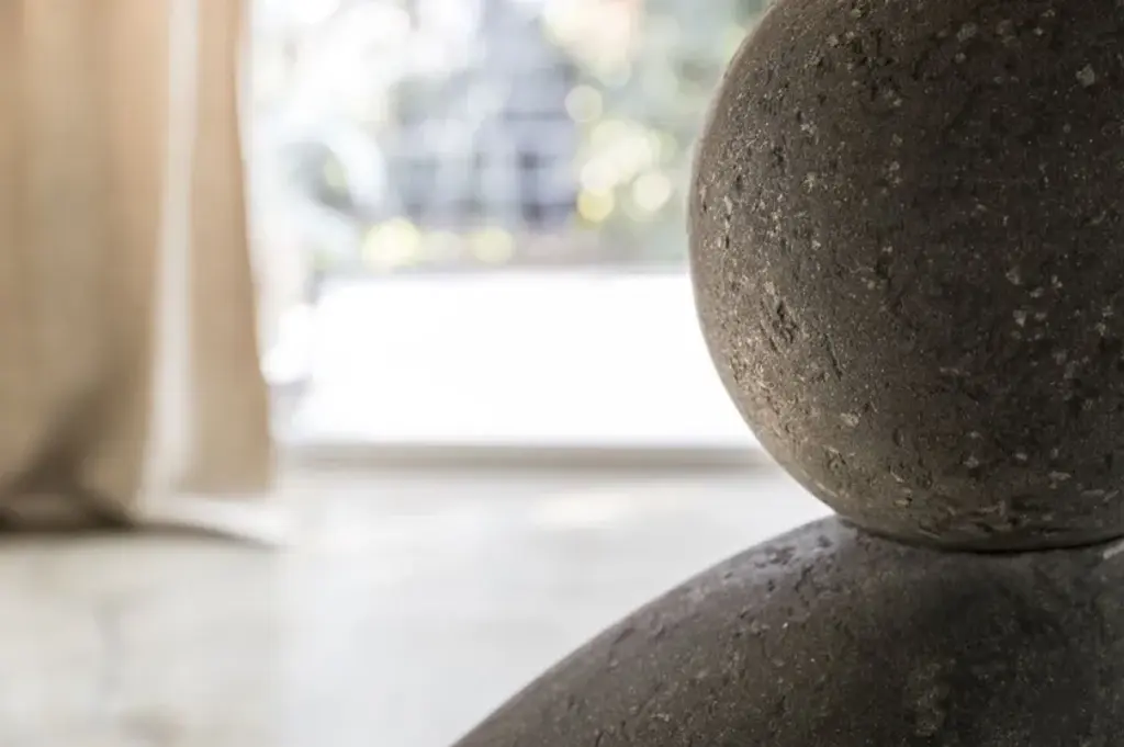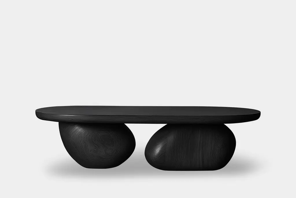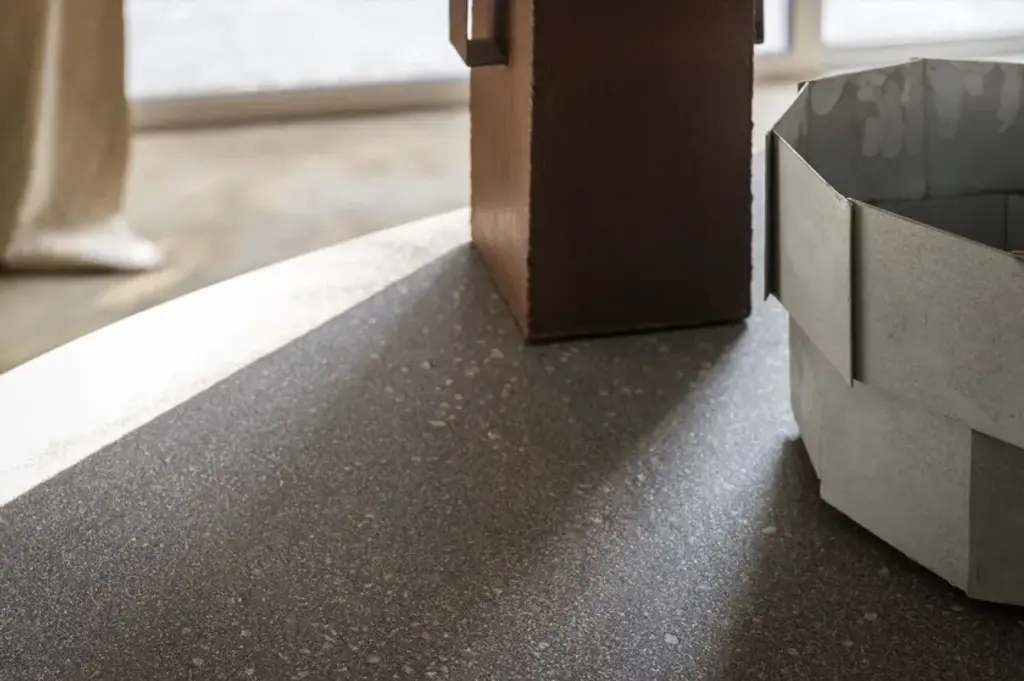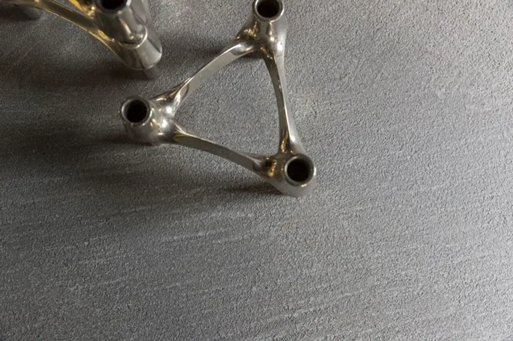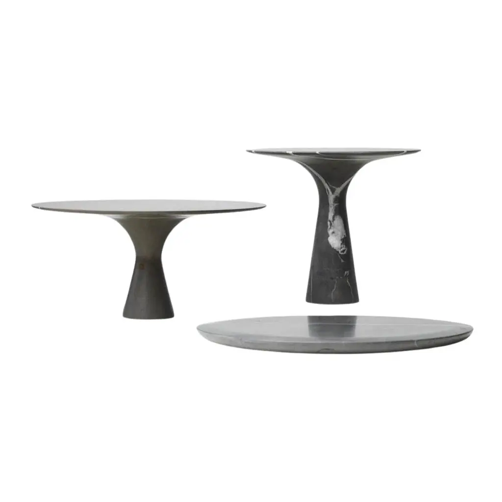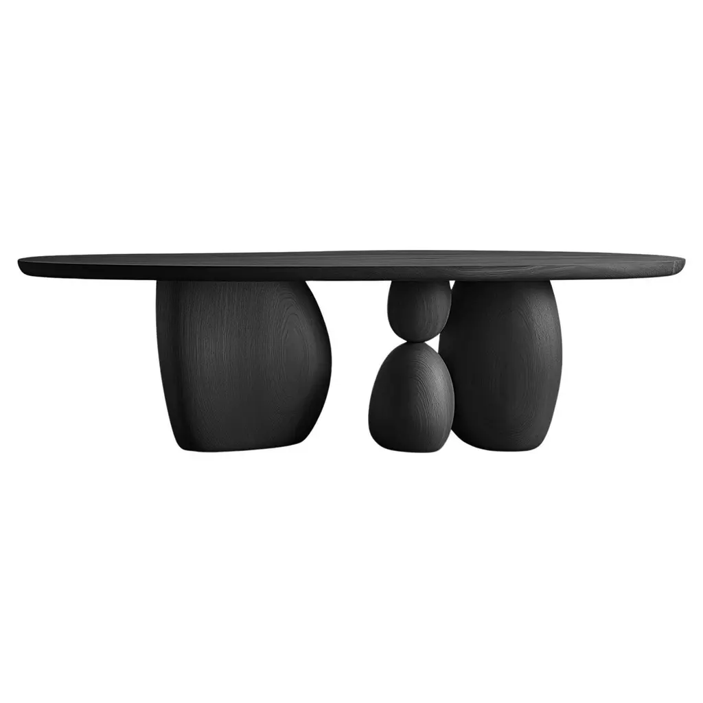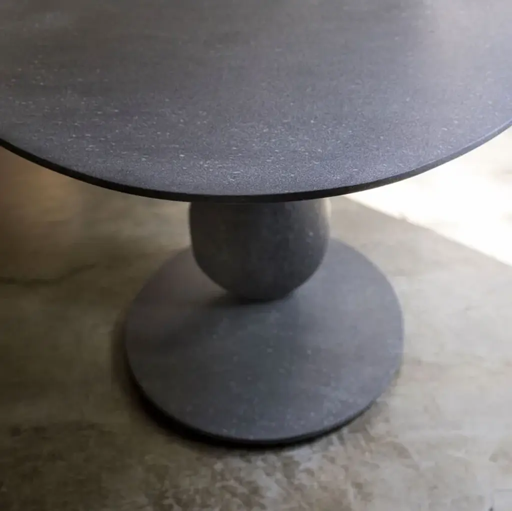 Matera is an oval table with metal structure and mdf top. All covered in 3 hand-brushed material finishes.Matera is an important table, two balanced stones that support a top, a perfect balance game.