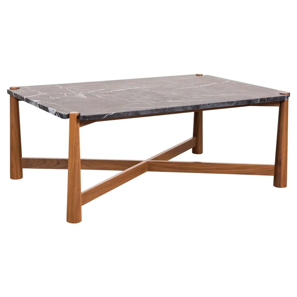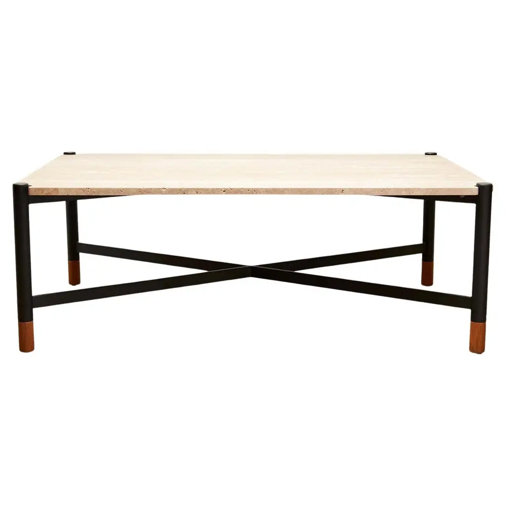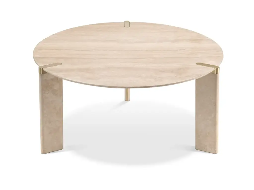 Mathilde Rectangular Beige Low Table With Golden Stone Top And Metal Copper