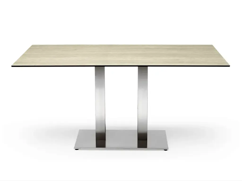 MAX Q-T is a table with flat square or rectangular base with metal round stand and adjusting feet. Finish shiny, brushed or painted. On request painted for outdoor.Available in 3 different heights.